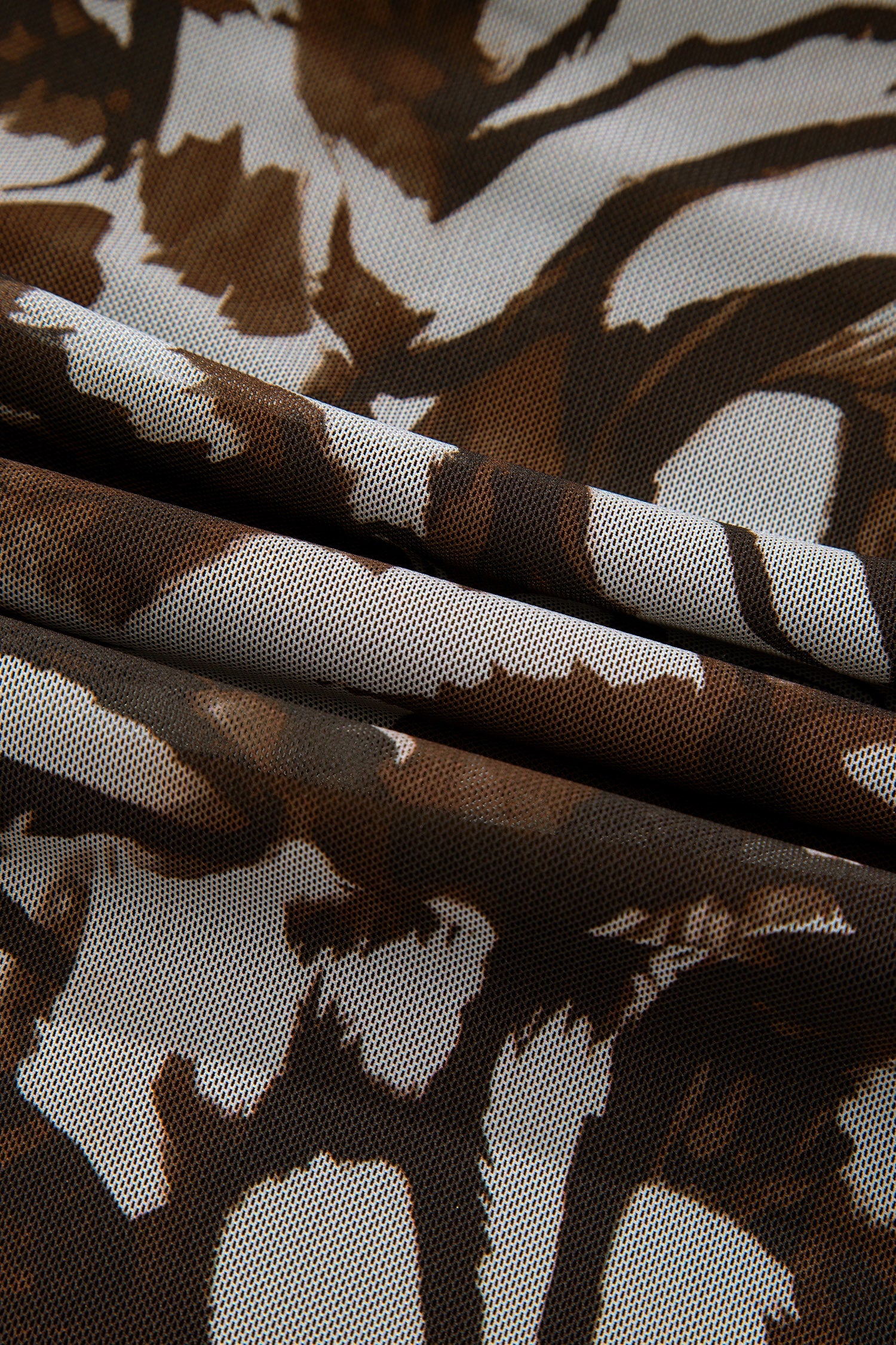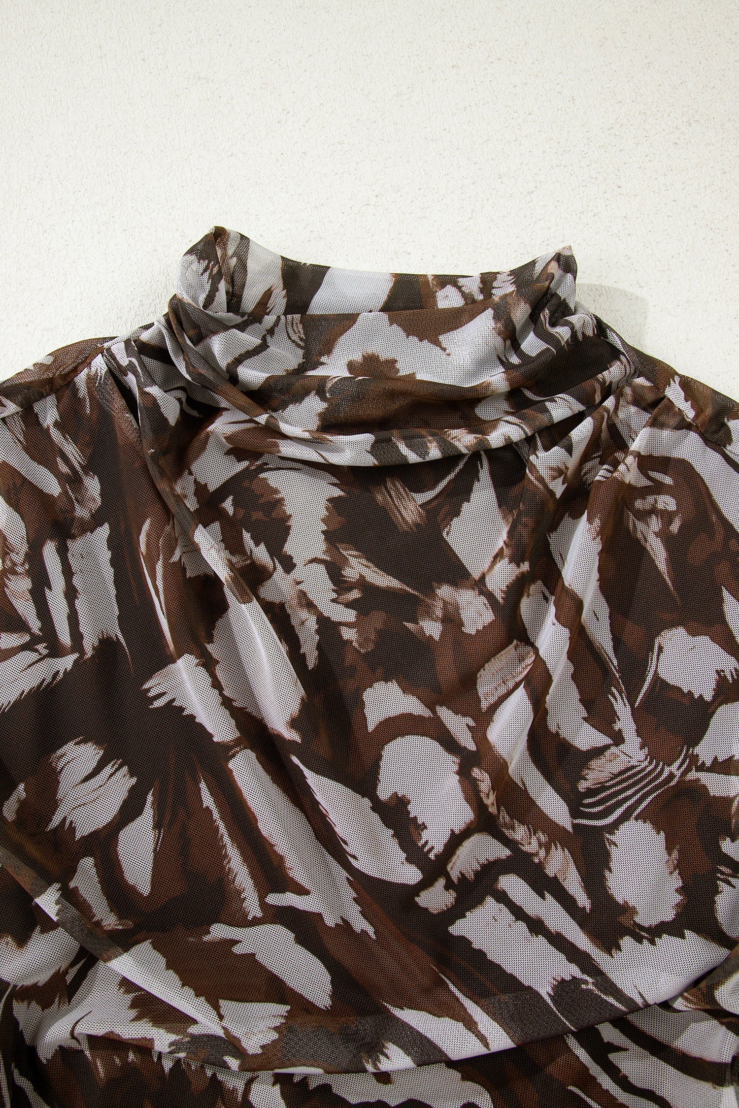 Abstract Mesh Cowl Neck Ruched Slit Midi Dress