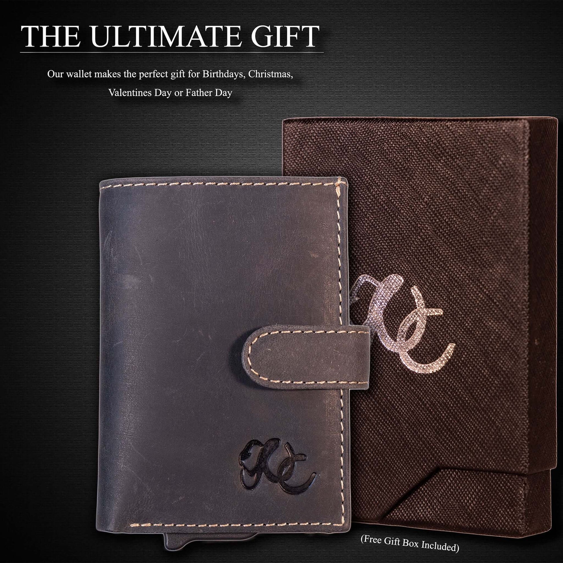 Full Grain Leather Auto Pop-Up Bifold Wallet with RFID