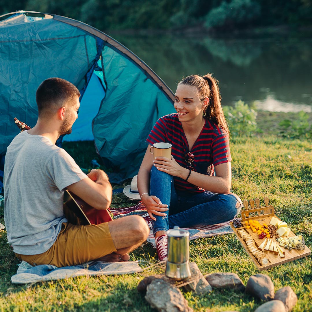 Who says camping can’t be classy? Bring along your bamboo serving board and enjoy the simple pleasures of cheese and charcuterie while basking in the beauty of nature.