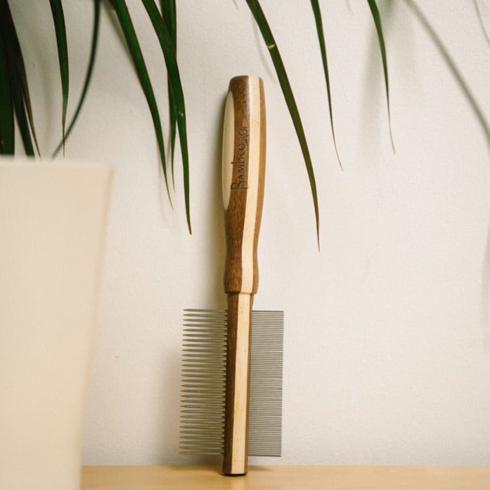 Our Double Sided Bamboo Dog Flea & Tick Comb is a sustainable and effective tool for keeping your furry friend free from pests, with two sides for versatile grooming