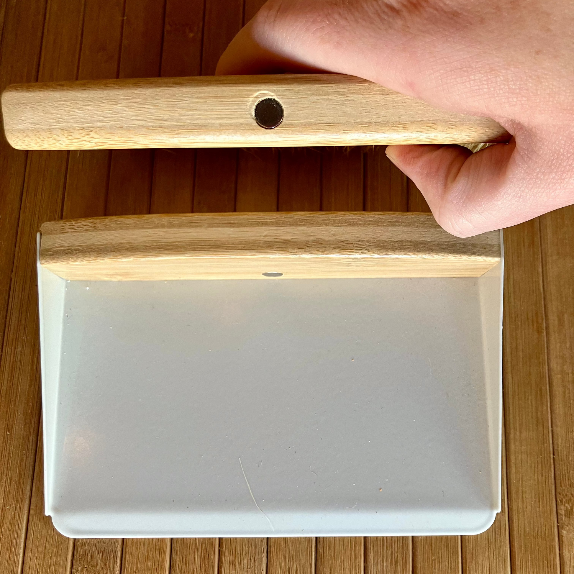 Our Bamboo Desk Dust Pan is perfect for small messes, this eco-friendly dust pan is crafted from sustainable bamboo, ensuring durability and a sleek, natural look. Its small size makes it ideal for dry kitchen clean ups, desks, countertops, and other tight spaces, offering a convenient and stylish solution for quick cleanups