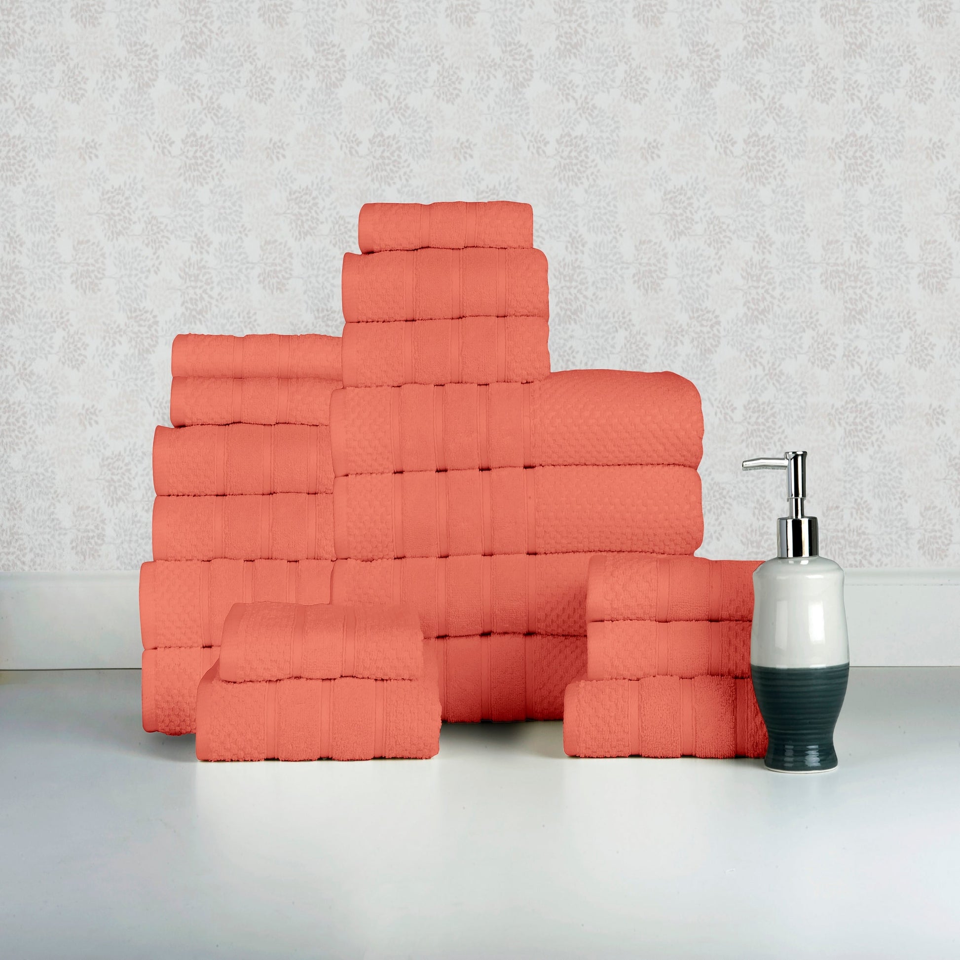 - Towel set includes 6 bath towels, 6 hand towels, and 6 washcloths