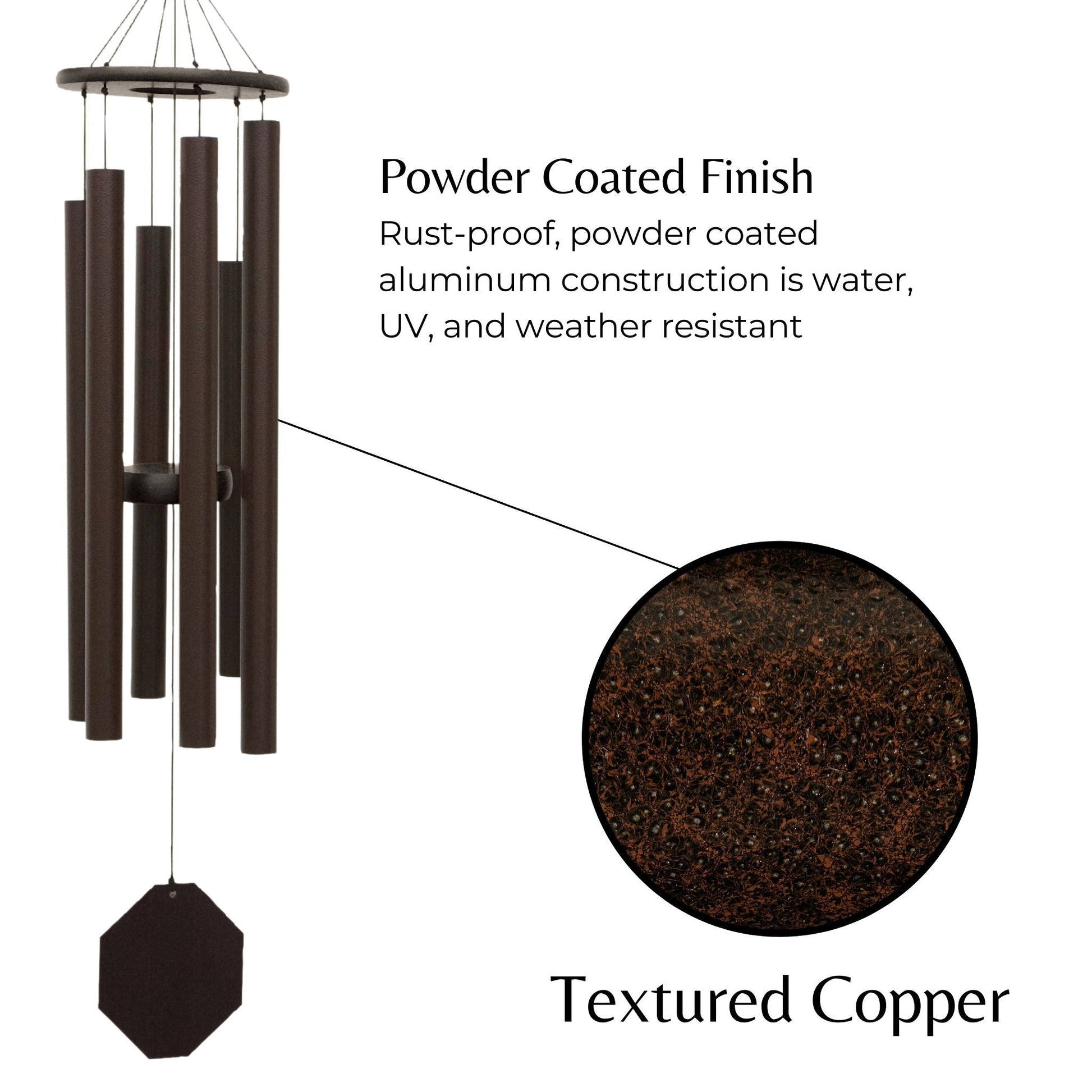 - Finish: Powder-coated, UV and water resistant ‘textured copper’ finish