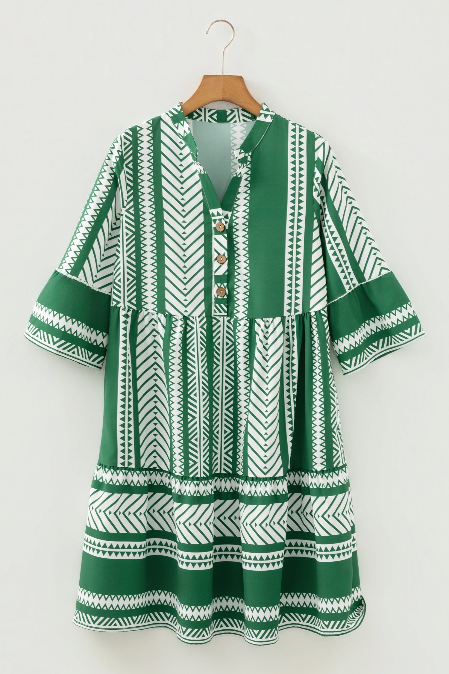Embrace your inner free spirit with this stunning boho dress, featuring a vibrant ethnic design that tells a story with every wear. The clever half button design lets you dress it up or down with zero fuss, while the 3/4 sleeves offer just the right amount of coverage for year-round styling. Crafted from soft, breathable fabric, this casual beauty keeps you comfortable from sunrise to sunset. Perfect for weekend adventures, casual hangouts, or whenever you're craving that effortless, laid-back vibe. 100% Polyester