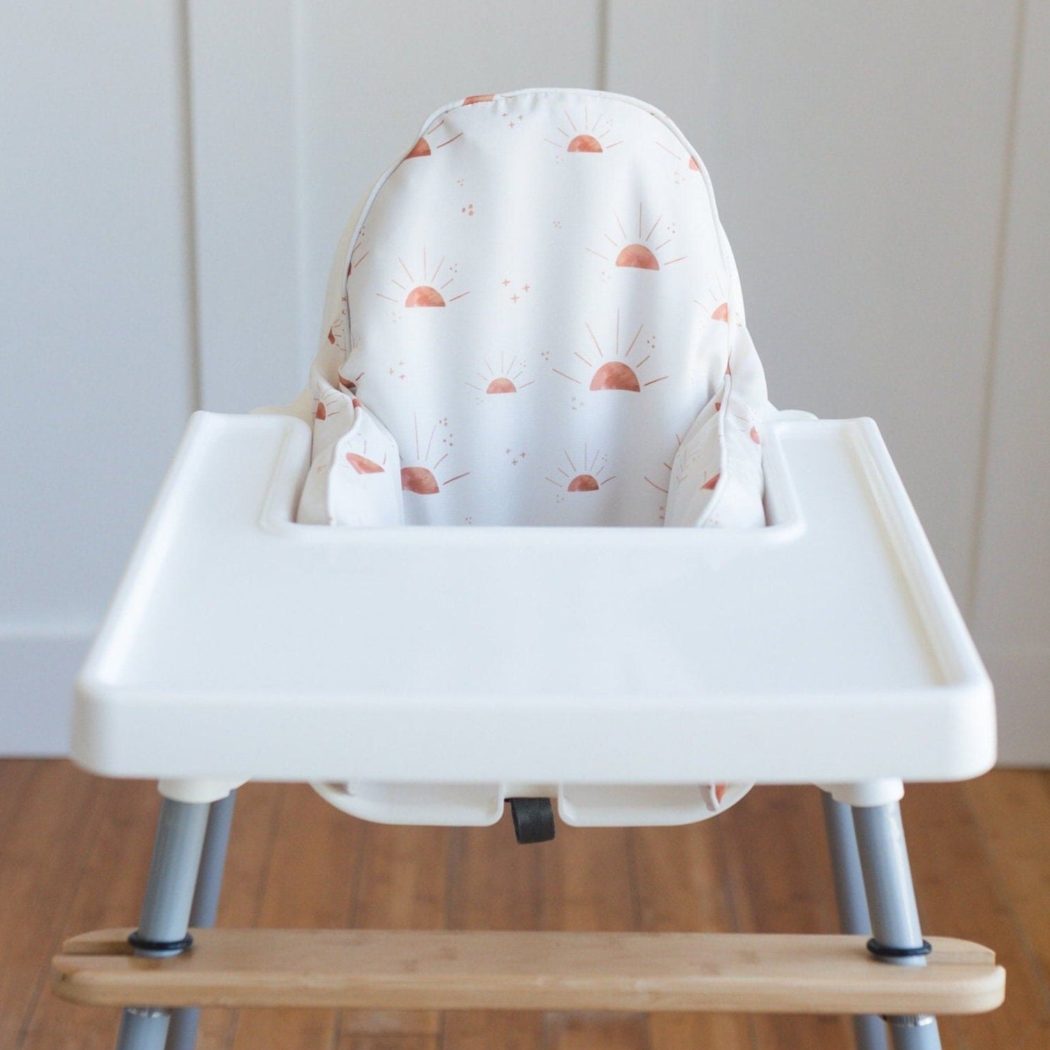 Rust boho sun design on off-white. Wipeable cushion cover for the IKEA Antilop Highchair