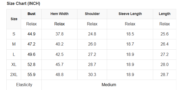 See size chart for approximate measurements.