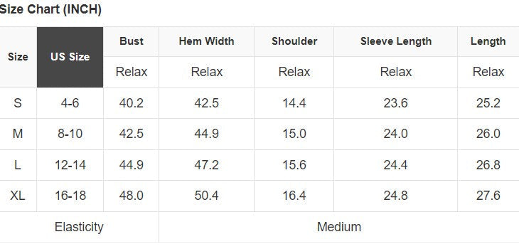 See size chart for approximate measurements.