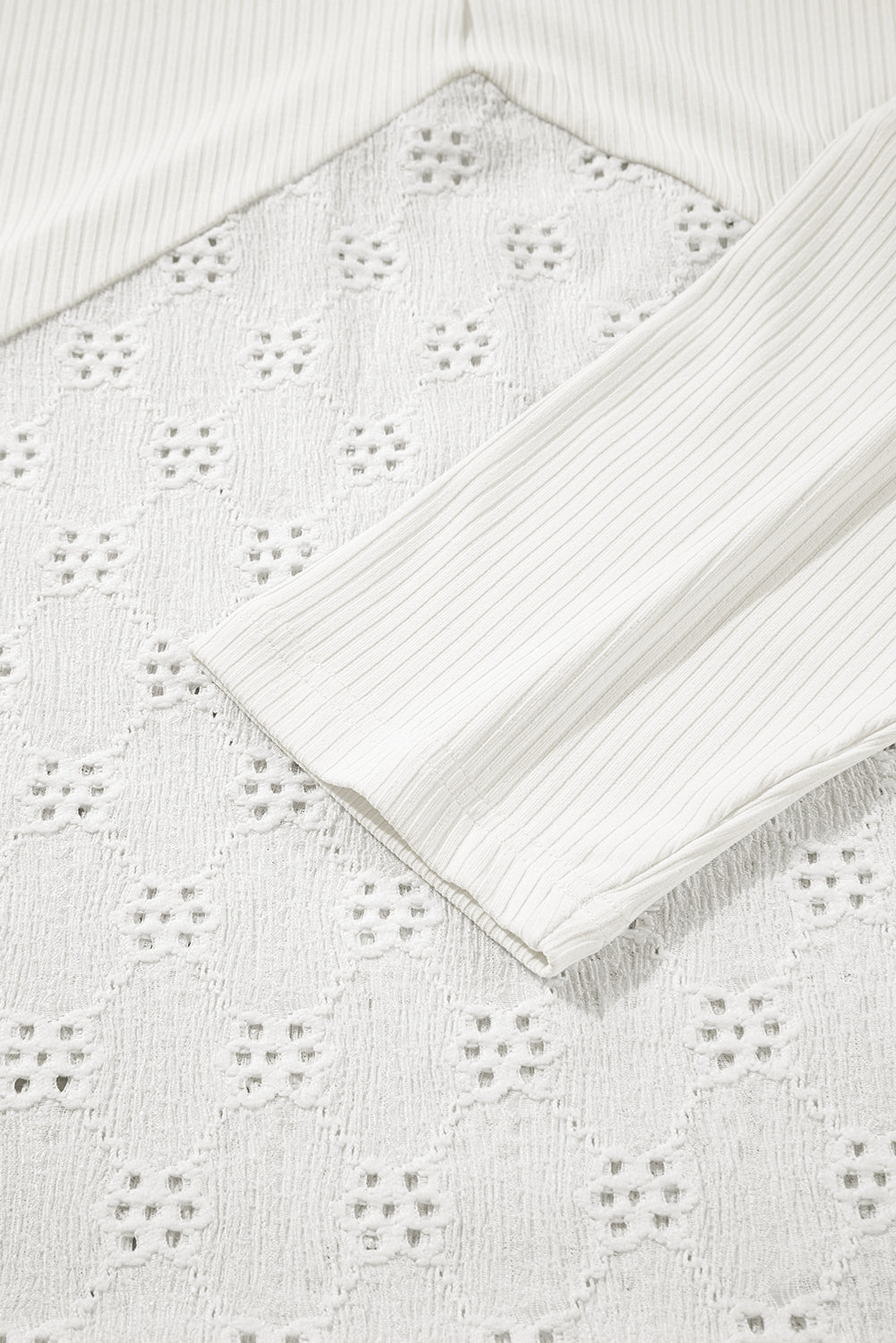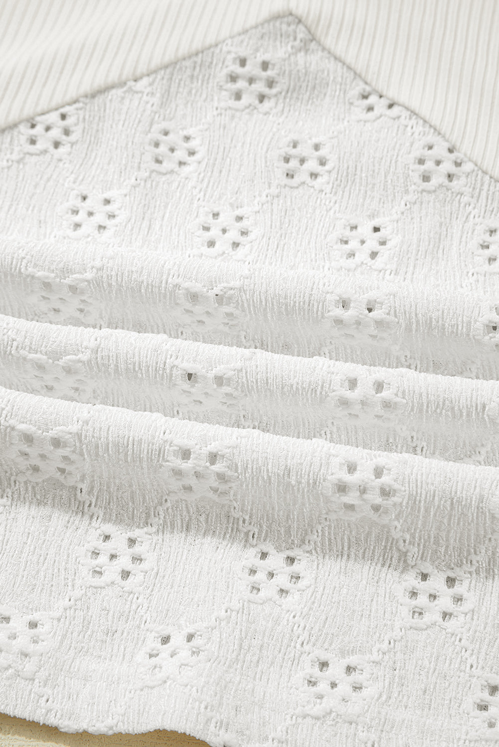 Corded Knit Patchwork Embroidered V-Neck Blouse