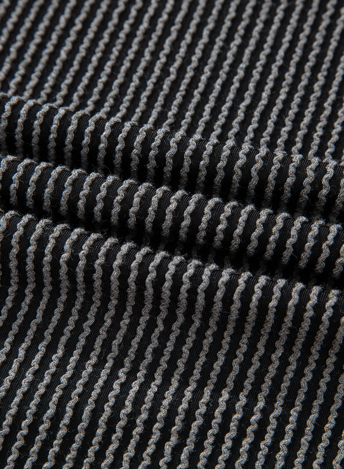 Turn heads with this playful two-piece set featuring a unique corded fabric that adds eye-catching texture. The elegant lantern sleeves bring a whimsical touch, while the high-waisted ruffled mini skirt defines your silhouette for a flirty finish. Perfect for effortless style that stands out. Polyester/Viscose/Spandex