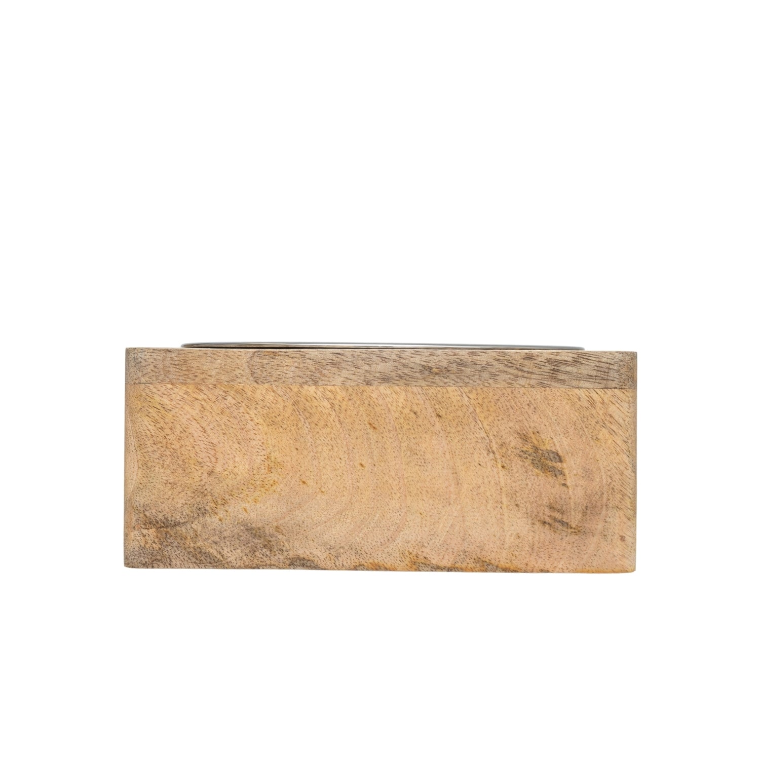 Crafted from premium stainless steel for durability and ease of cleaning. Ideal for both food and water, this bowl is resistant to rust and corrosion, ensuring longevity. The holder is made from beautifully grained mango wood in a unique square shape, adding a touch of aesthetic elegance to your home while keeping the bowl stable during mealtime. The stainless steel bowl is removable for hassle-free cleaning and is dishwasher safe, making maintenance a breeze. The robust mango wood holder which measures 7.2" x 3.2" ensures a stable, slip-resistant base, reducing spills and keeping the feeding area tidy.