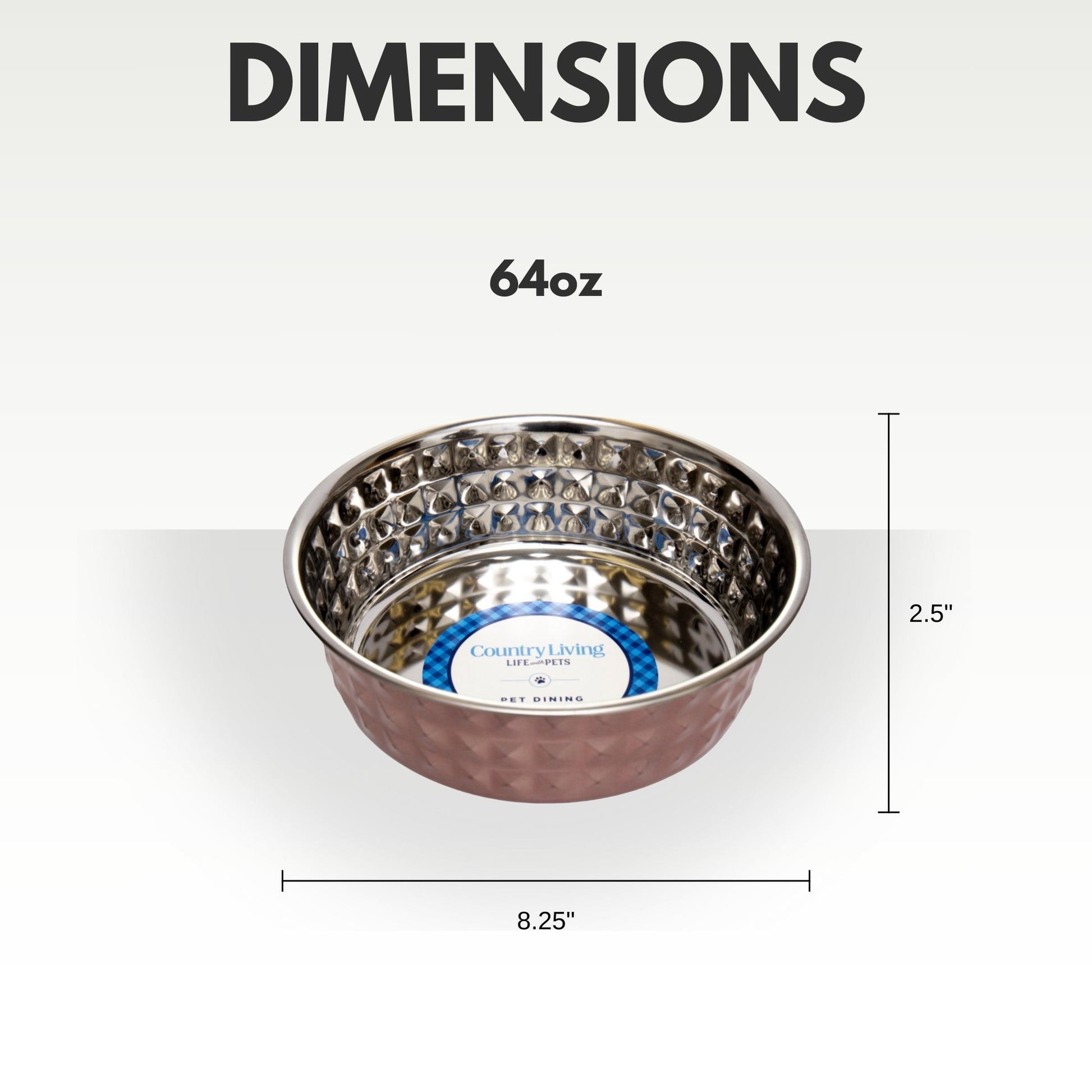Country Living Set of 2 Hammered Stainless Steel Dog Bowls – Ideal for Extra Large Breeds – Rose Quartz/64oz