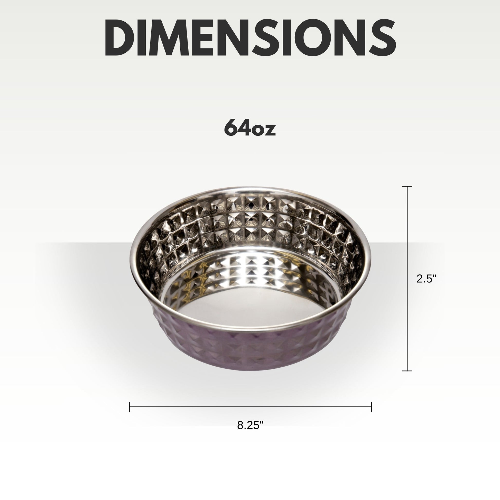 Available in 32oz and 64oz sizes, these bowls provide ample capacity for both food and water, making them perfect for medium, large and extra large dogs. A built-in lip ensures easy handling, while optional non-skid nubs help maintain stability and prevent spills, protecting your floors.