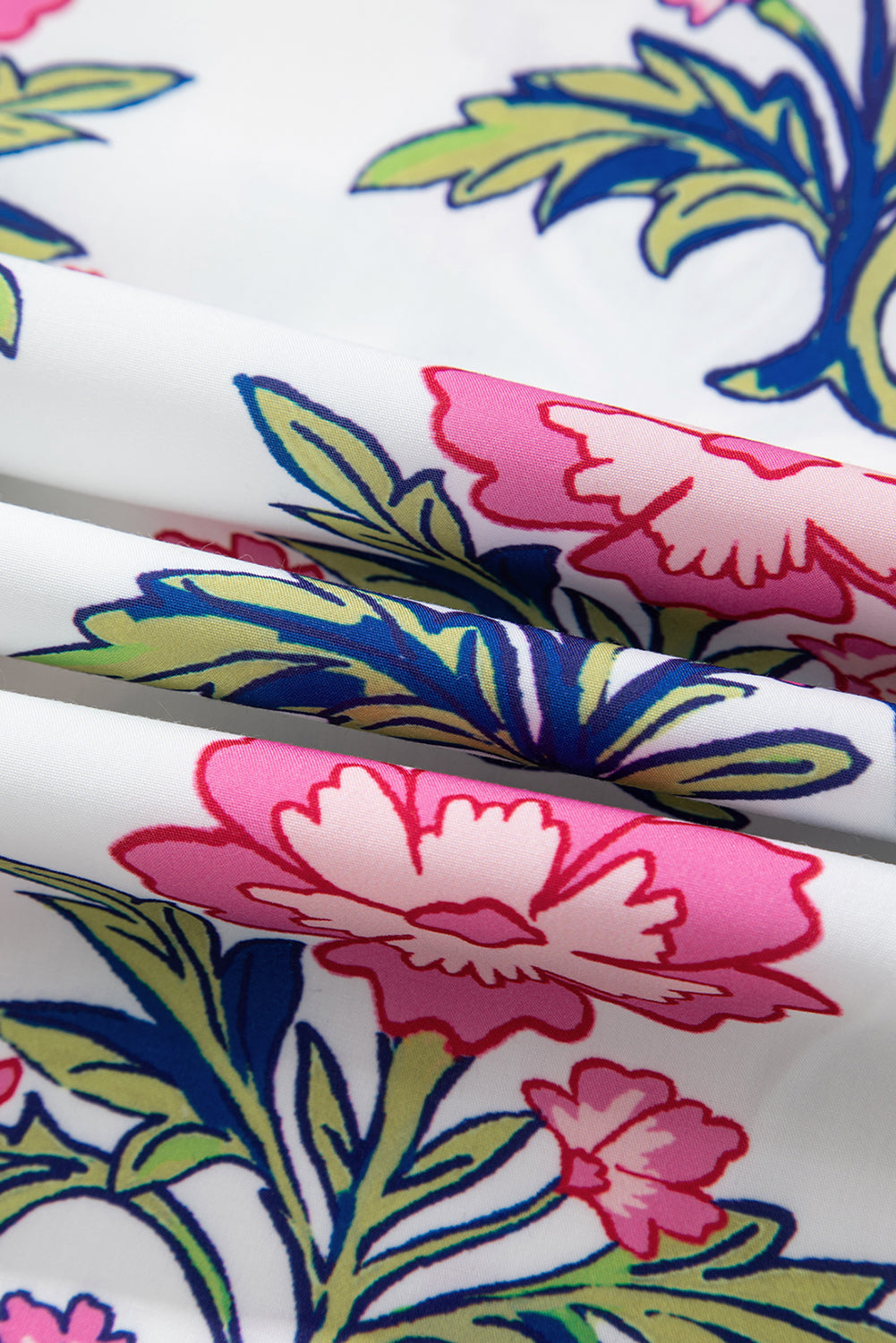 Floral Colorblock Stripe Knot Bubble Sleeve Blouse