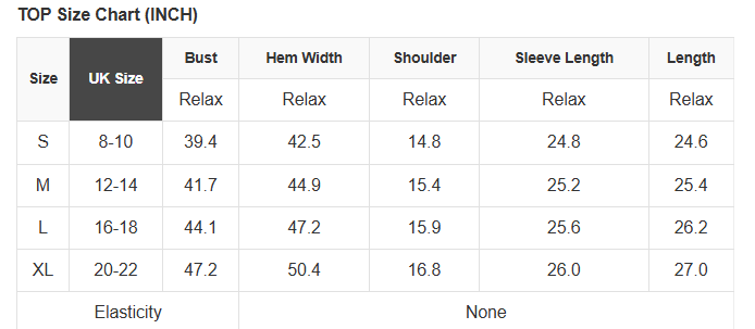 See size chart for approximate measurements.