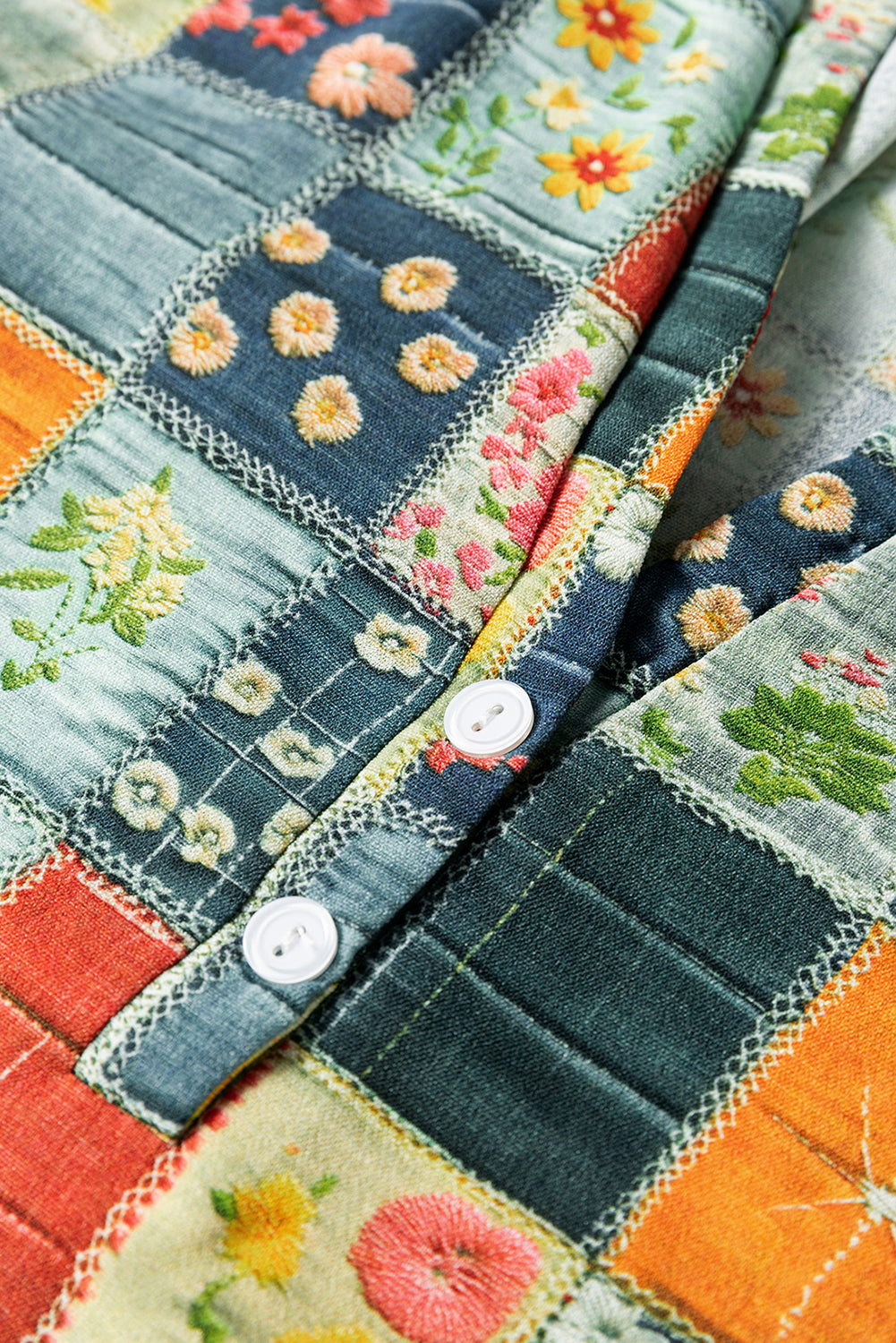 Floral Half Placket Collared V-Neck Blouse