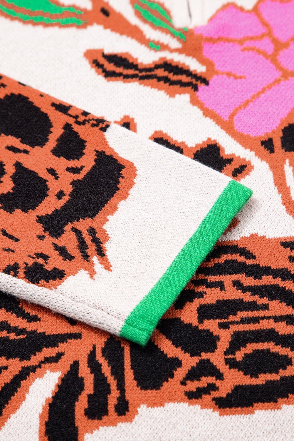 Floral Knit Quarter-Zip Long Sleeve Sweater