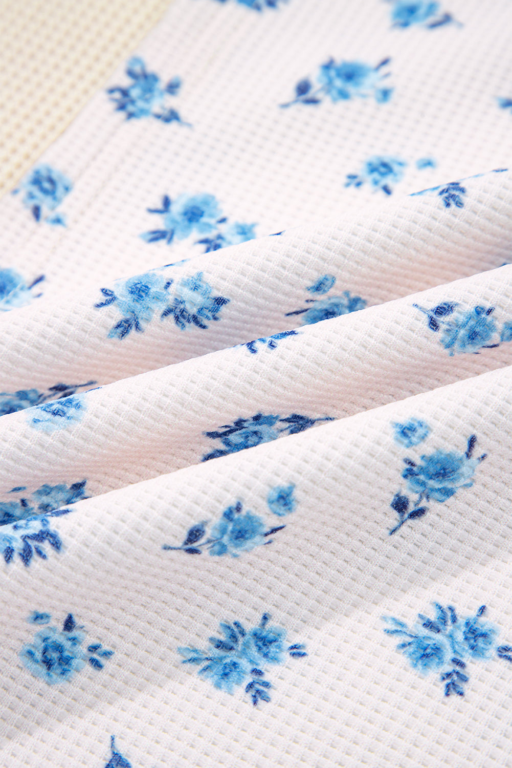 Floral Patchwork Waffle Knit Balloon Sleeve Top