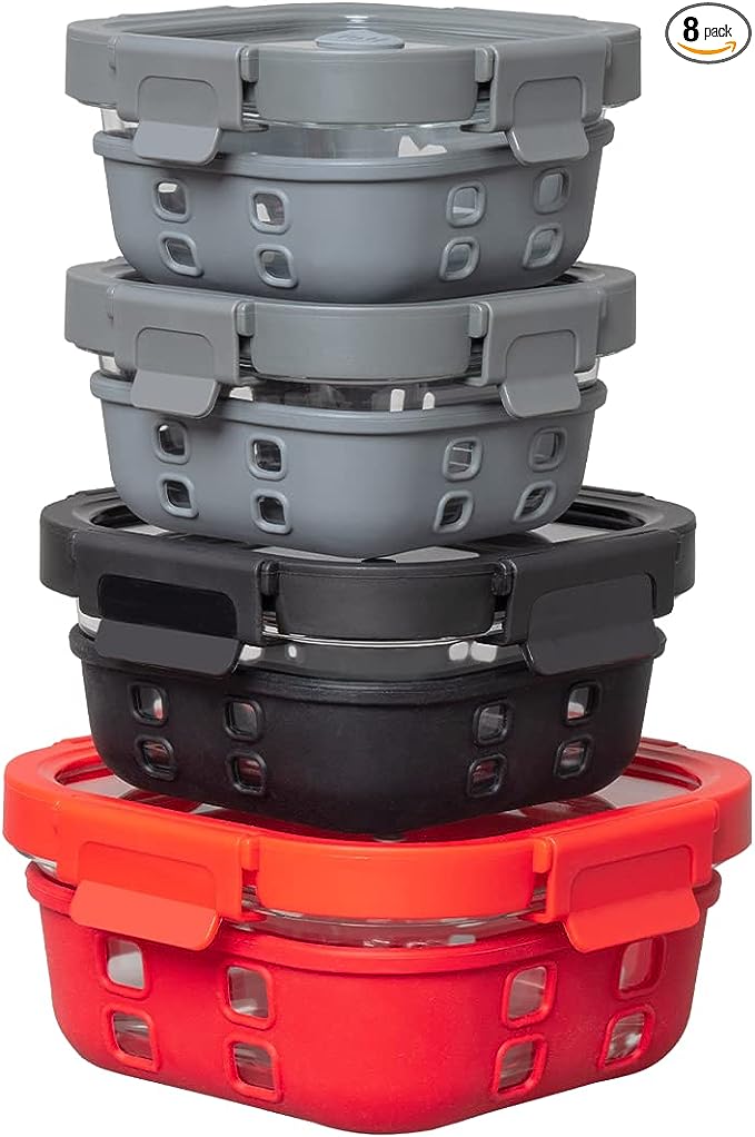 Each container in this set comes with a removable silicone sleeve that prevents slipping and serves as a safe place to hold the container while it's hot.