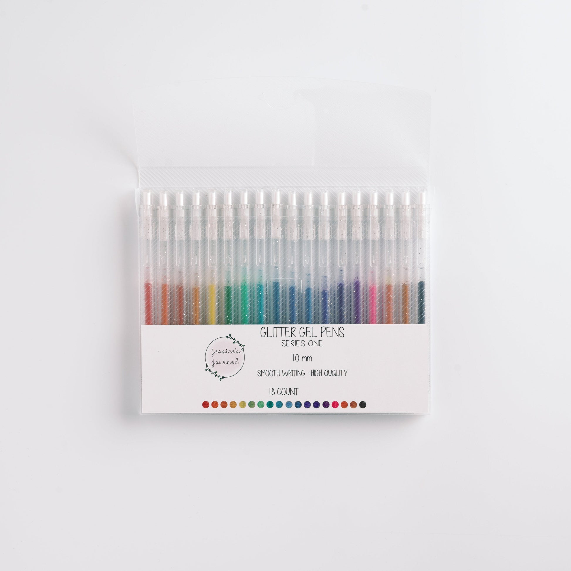 One set of high quality glitter gel pens. Choose from 2 series featuring an array of different colors.