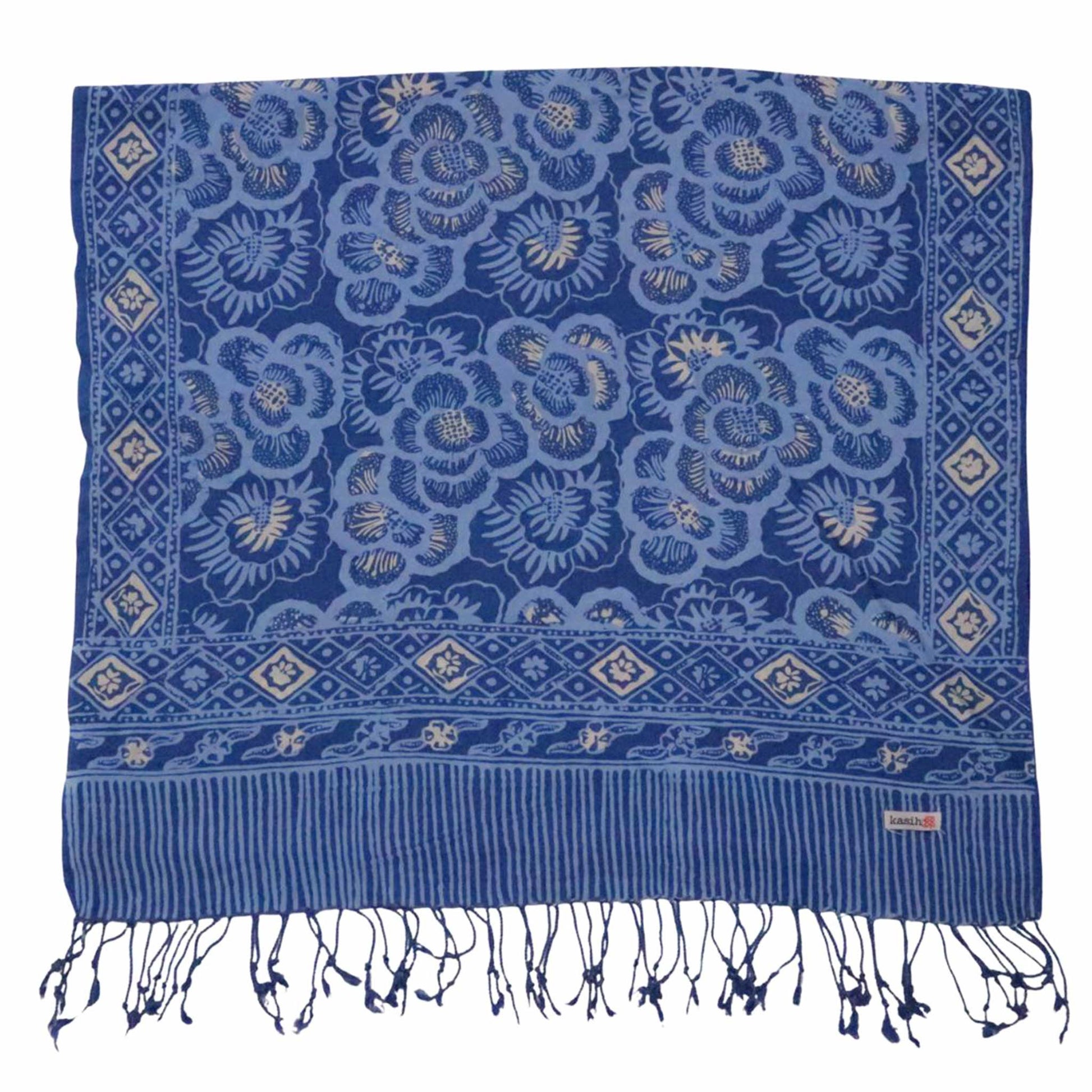 This is a hand-dyed and hand-stamped batik scarf, handmade by artisans. This fabric is handmade by artisans in Java using centuries old wax & dye batik technique.