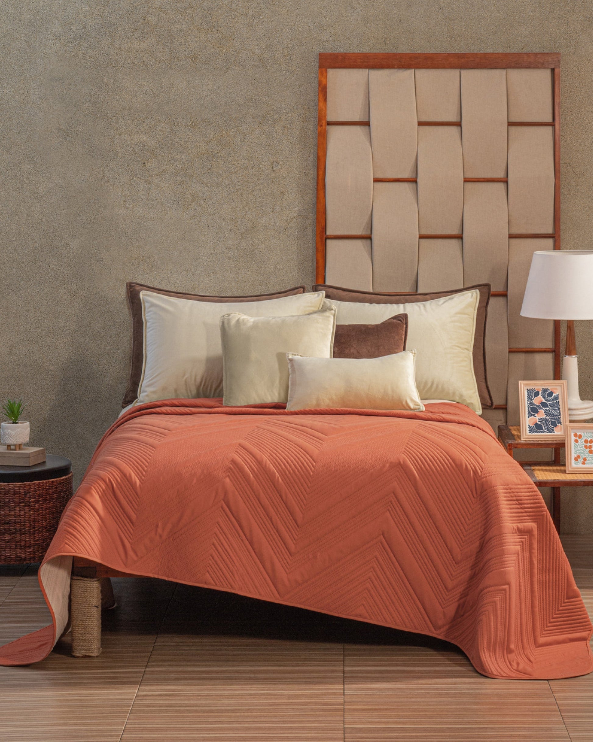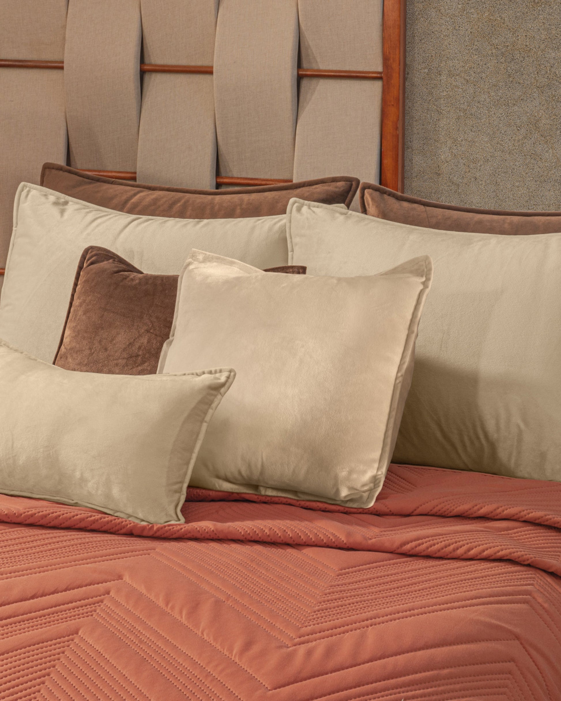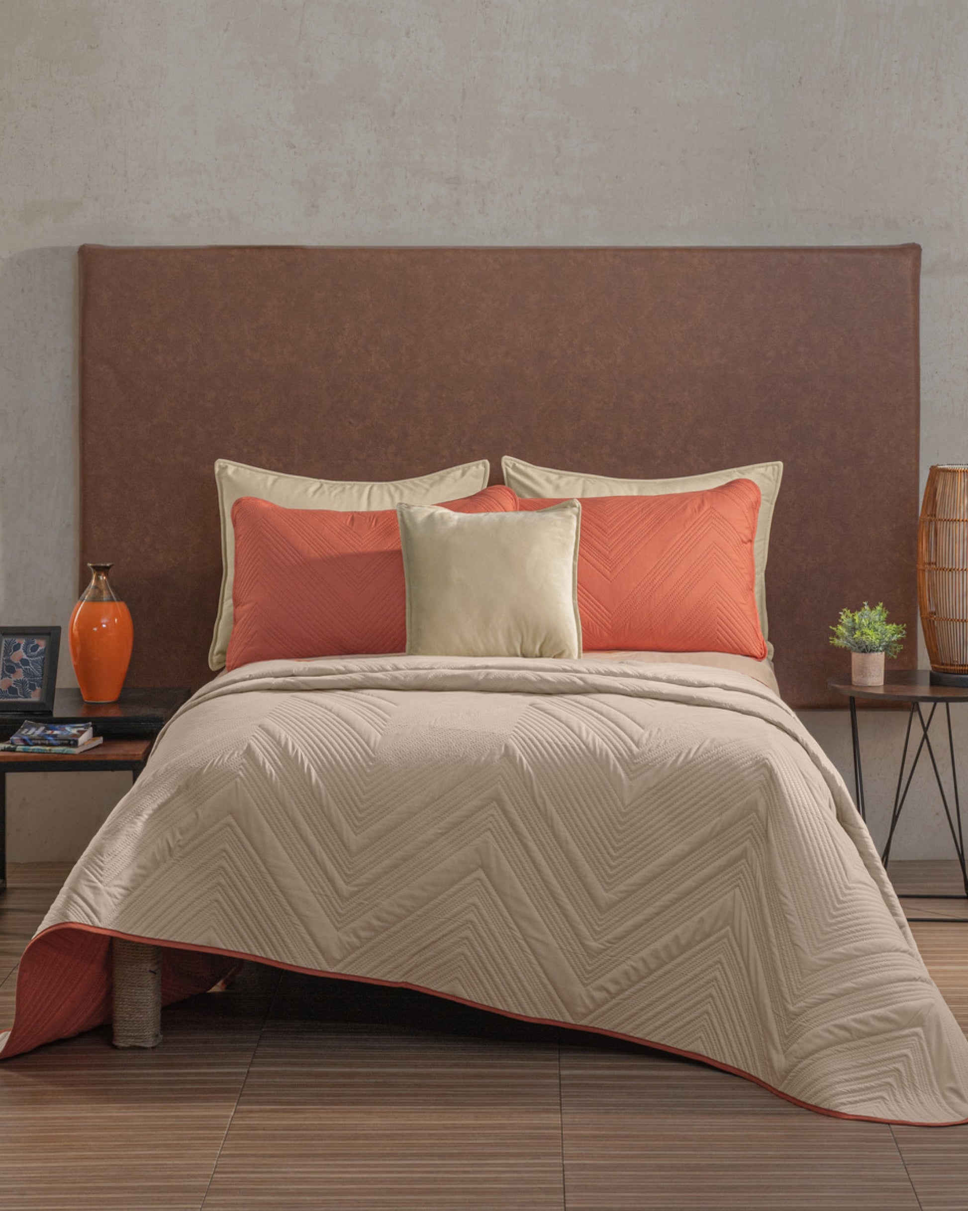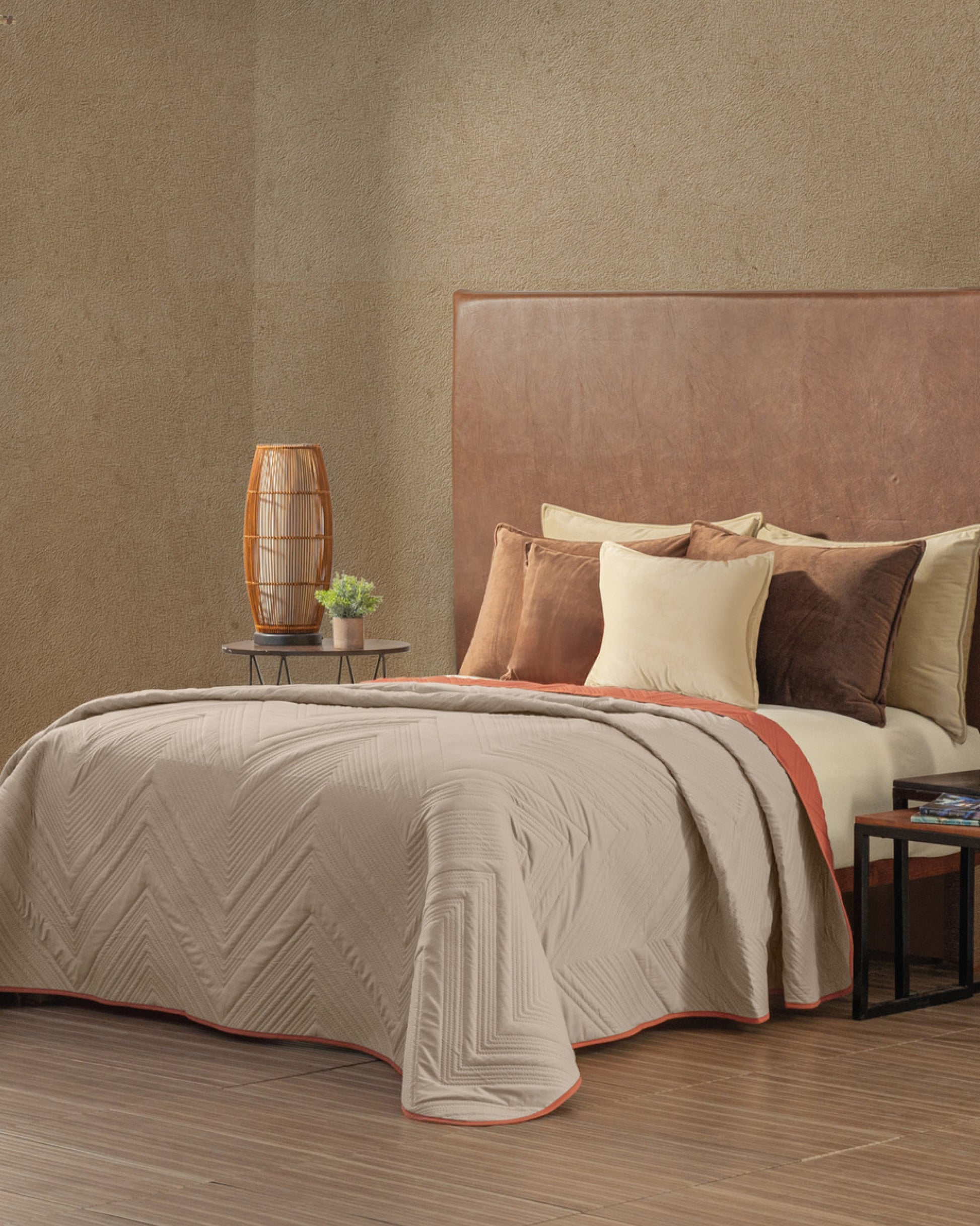 Tierra equilibra lo natural y lo moderno con maestría. Sus tonos cálidos, con textura en relieve y capitonado sin hilos, crean una cama que se siente vestida, fresca y con estilo. Es el tipo de diseño que transforma el cuarto con solo estar ahí, sin pedir nada más. Atemporal, acogedor y con mucha presencia.