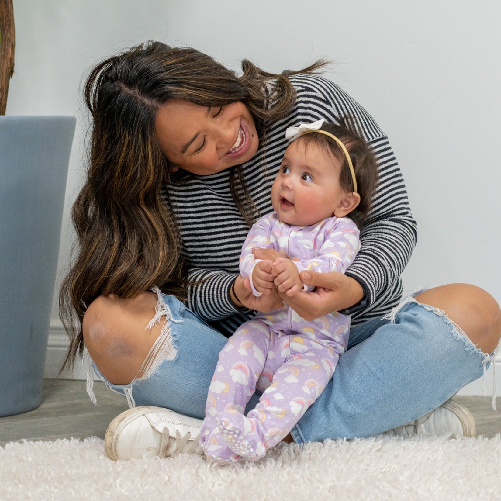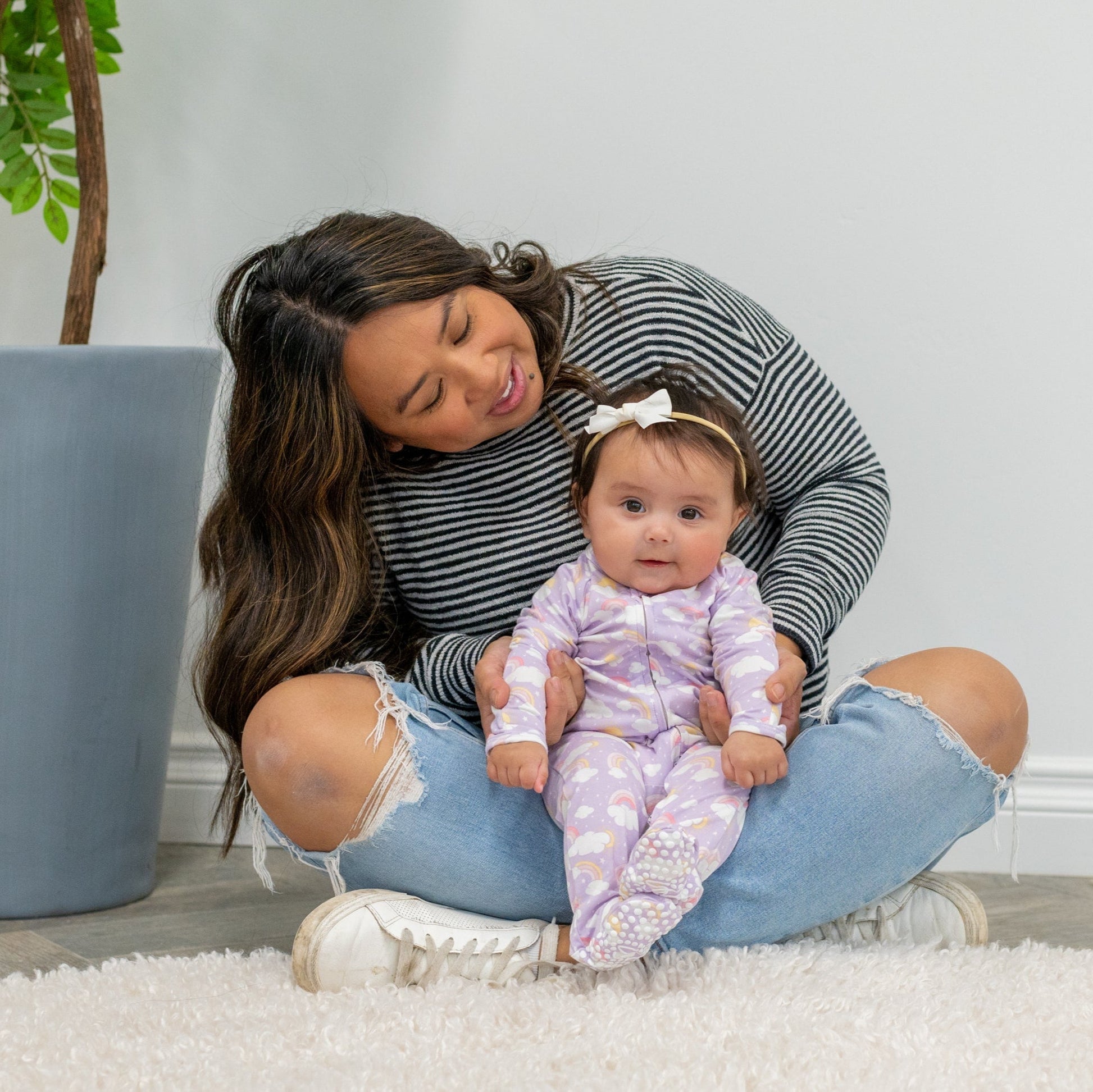 Ask and you shall receive. This yummy footie is equipped with a smooth 2-way zipper, silicone grips on the foot pads and fold-over handcuffs. Plus our silky-soft fabric hugs in all the right places to show off those baby curves.