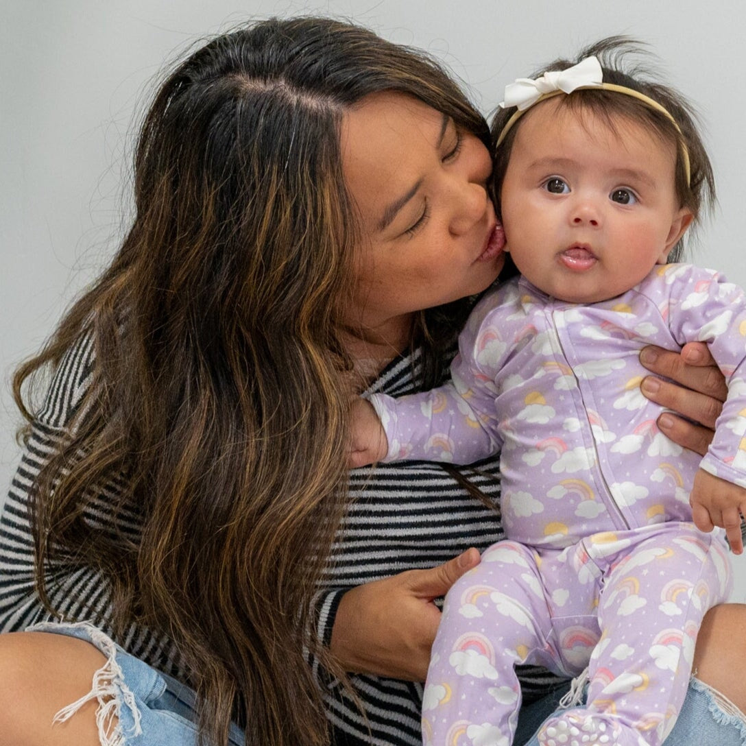 Lavender Rainbows and Clouds Zipper Footie