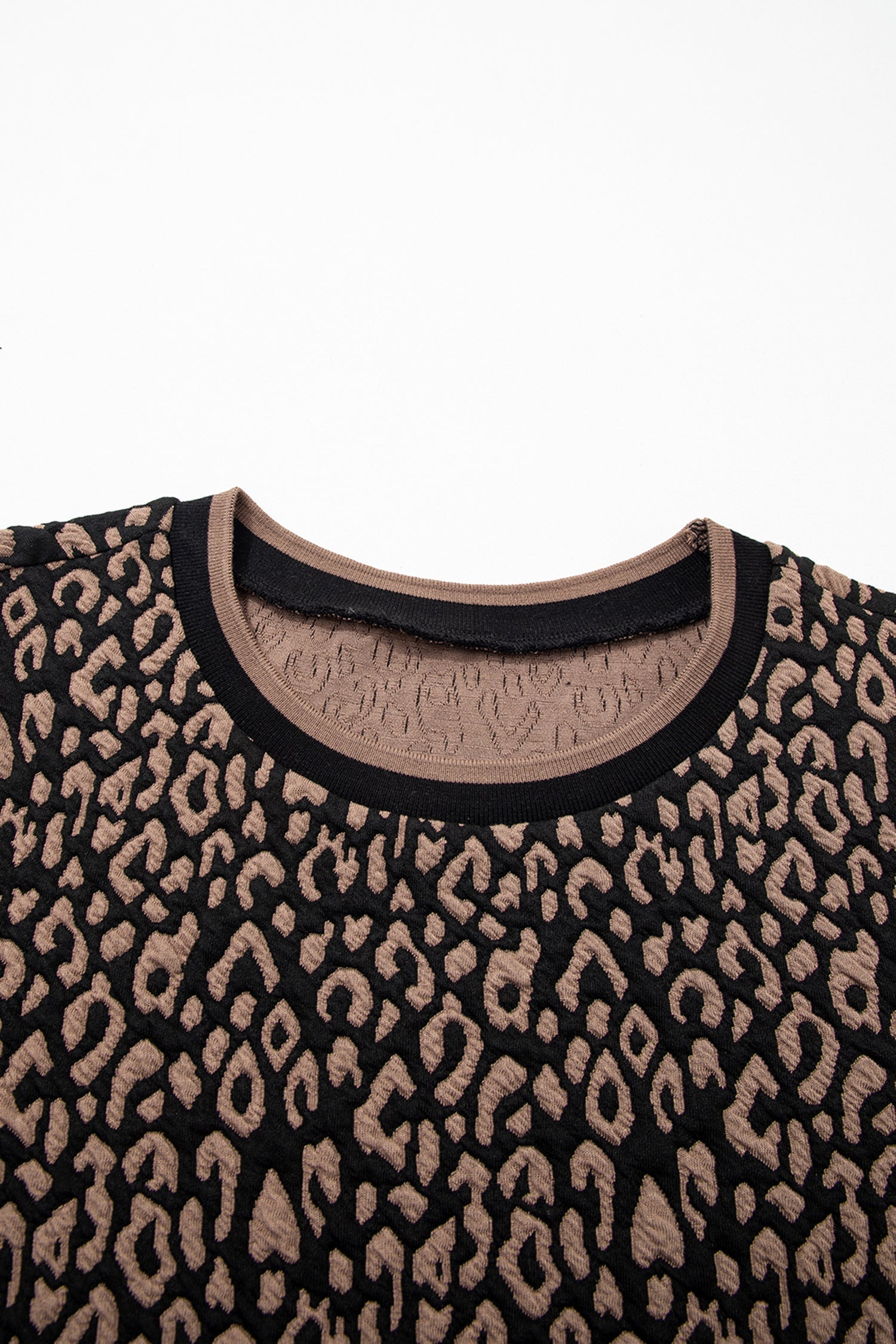 Leopard Contrast Trim Puffy 3/4 Sleeve Top