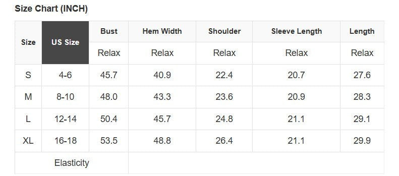 See size chart for approximate measurements.