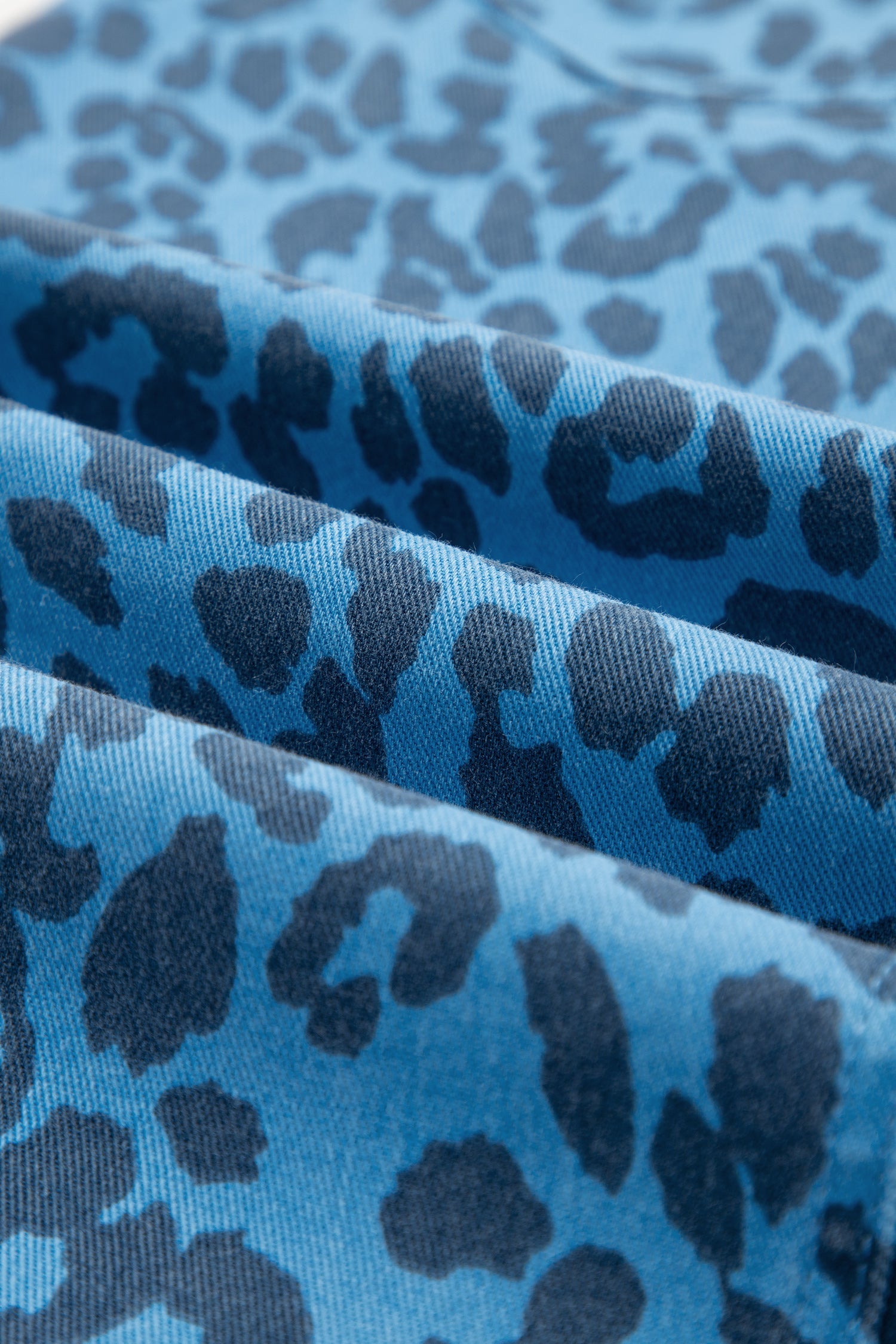 Leopard Denim Frayed Hem Midi Skirt