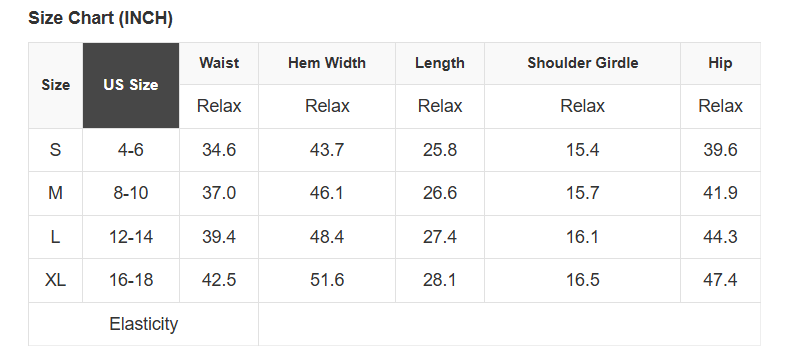 See size chart for approximate measurements.