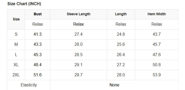 See size chart for approximate measurements.