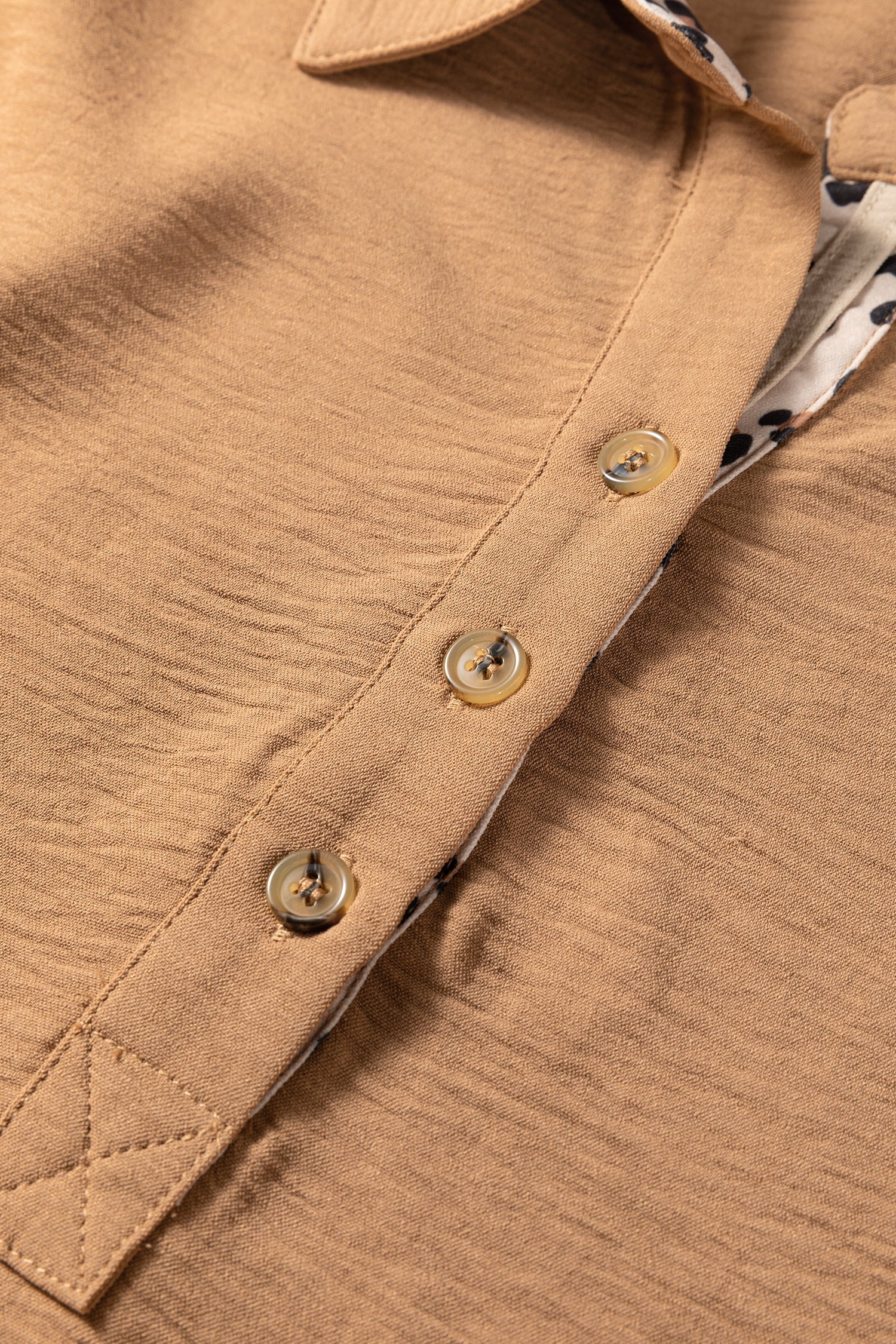The polo collar and button-front design add a refined, modern touch.