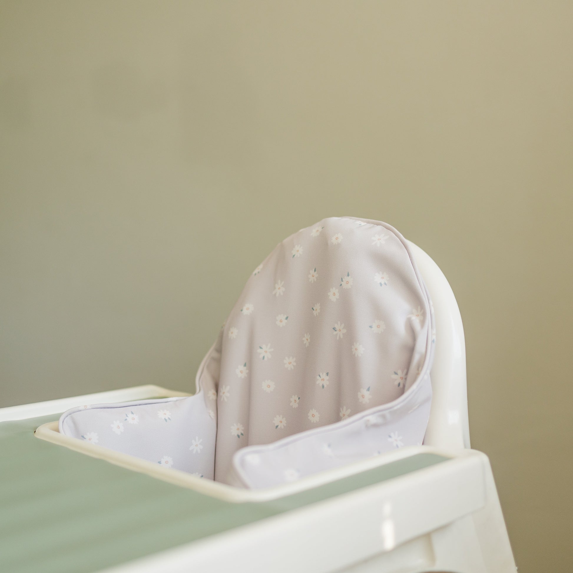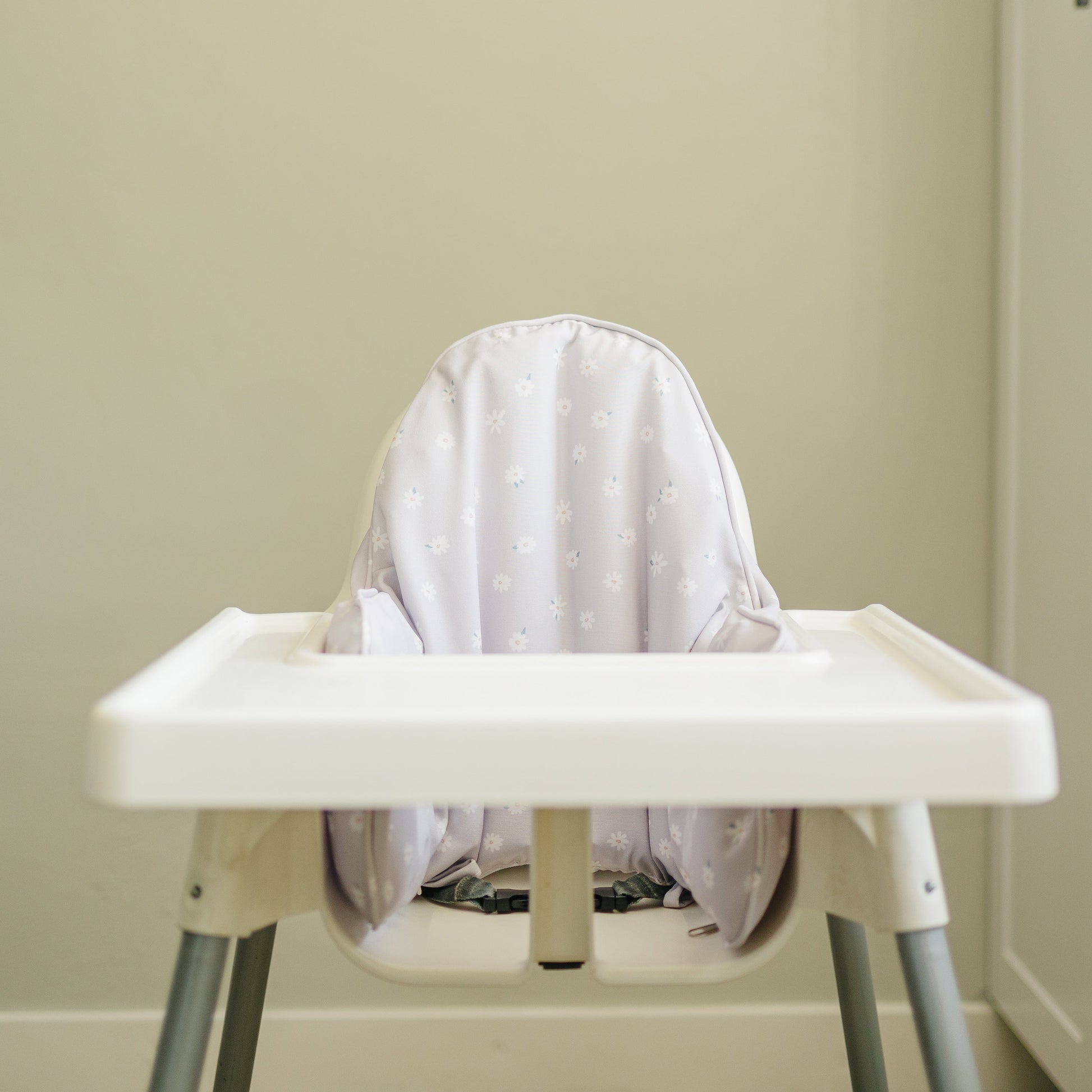 Tiny white daisies printed on pale lavender! Wipeable cushion cover for the IKEA Antilop Highchair