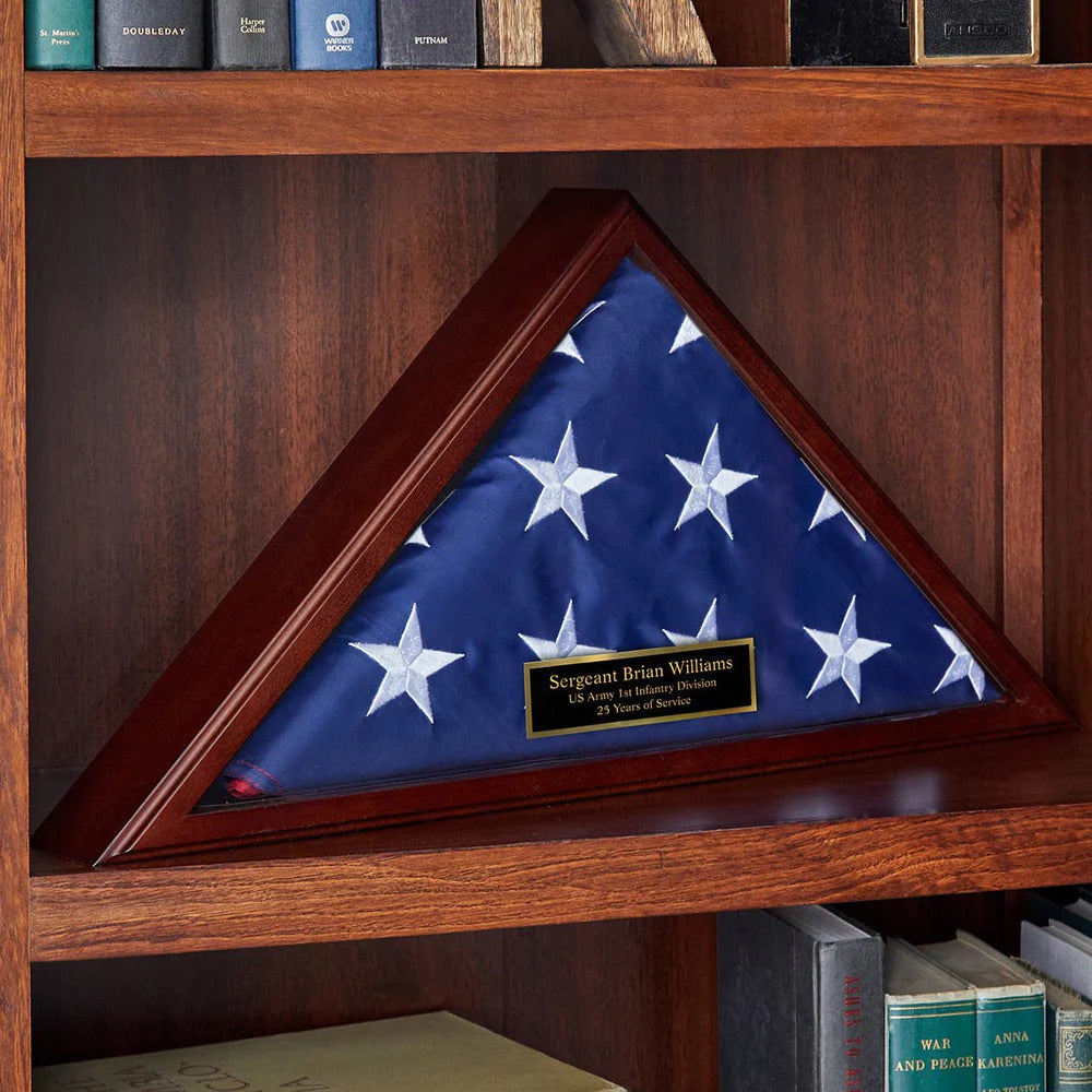 Make your display even more special with a **custom engraved nameplate**, featuring up to **three lines of text**. Add your hero’s **name, rank, and years of service** to create a **personalized military flag case** that will be cherished for generations.