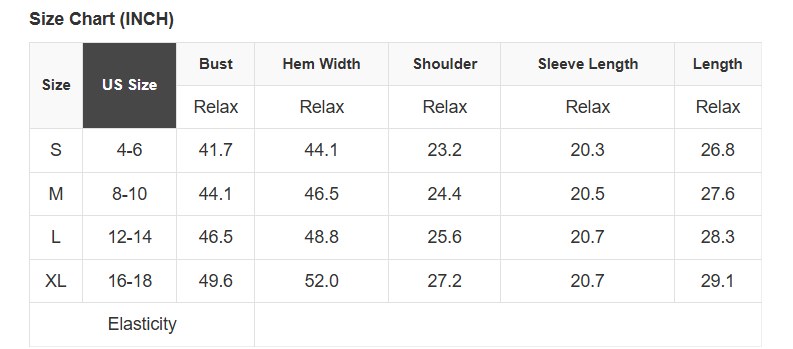 See size chart for approximate measurements.