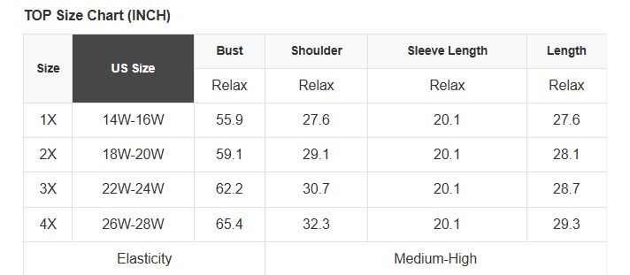 Plus Size Info: See size chart for approximate measurements
