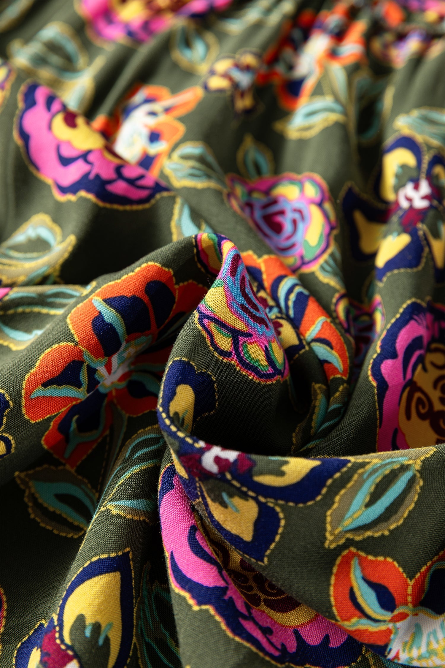 Embrace your inner bohemian goddess in this enchanting mini dress. The vibrant botanical print captures that carefree, wanderlust-filled energy you crave, while the collared split neckline adds an unexpected twist of sophistication. Pleated detailing creates gorgeous movement and dimension, flattering your curves beautifully. Puff sleeves bring playful drama and a hint of vintage romance to the mix. Perfect for garden parties, weekend adventures, or whenever you want to feel effortlessly chic and wonderfully free-spirited. 100% Viscose