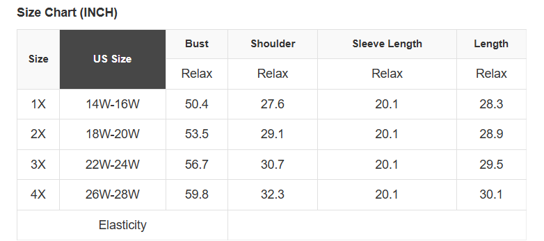 Plus Size Info: See size chart for approximate measurements