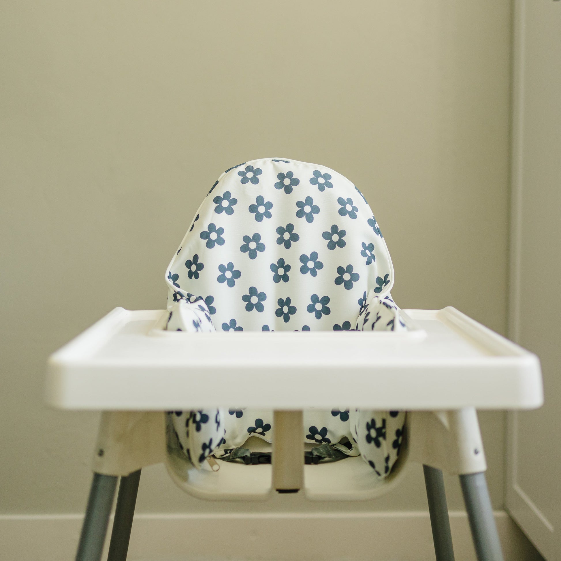 Black Flowers printed an off-white background! Wipeable cushion cover for the IKEA Antilop Highchair