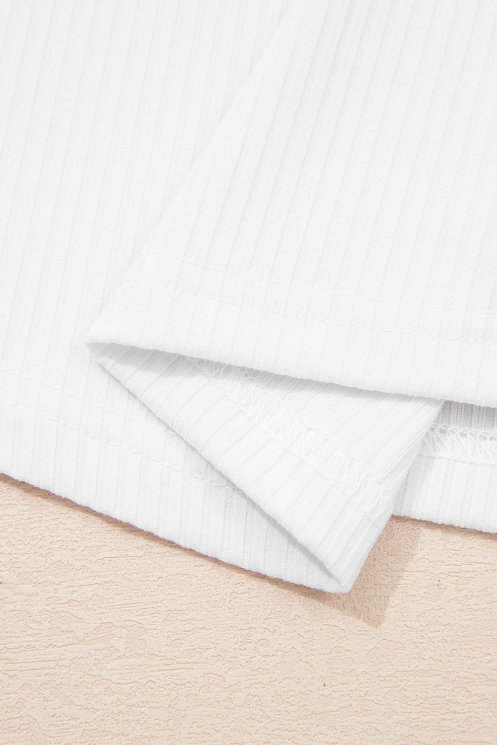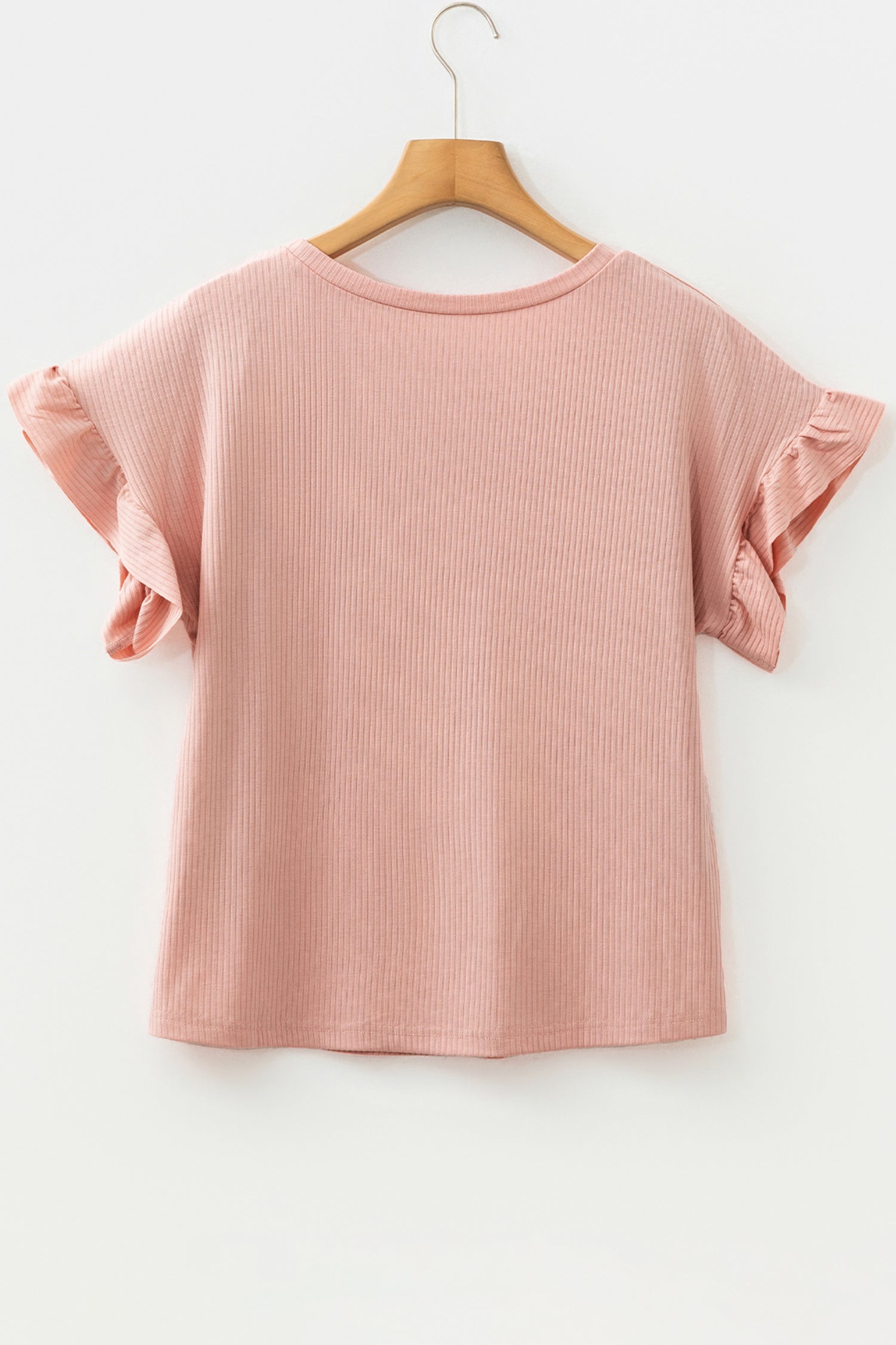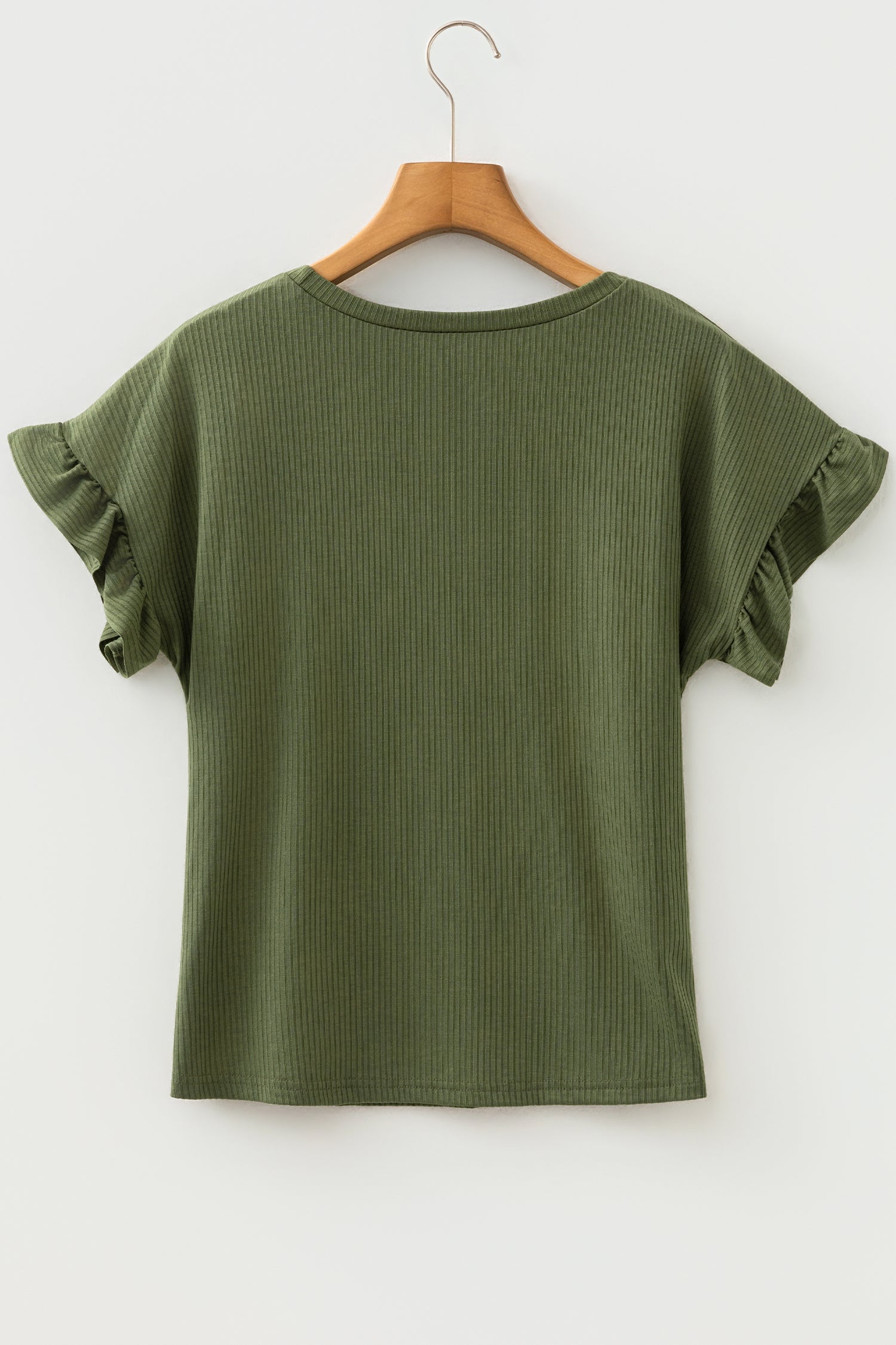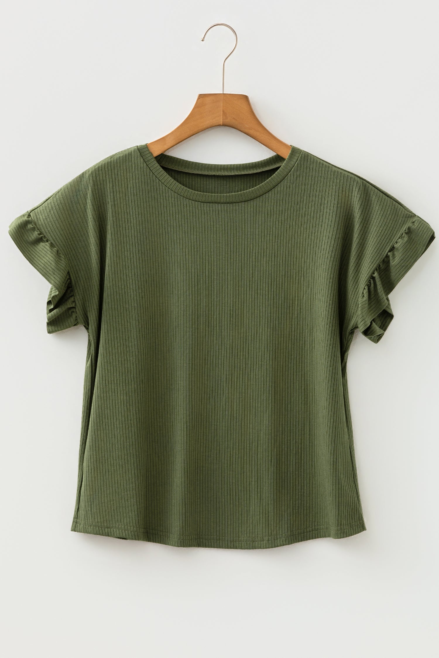 Solid Ribbed Knit Ruffle Short Sleeve T-Shirt