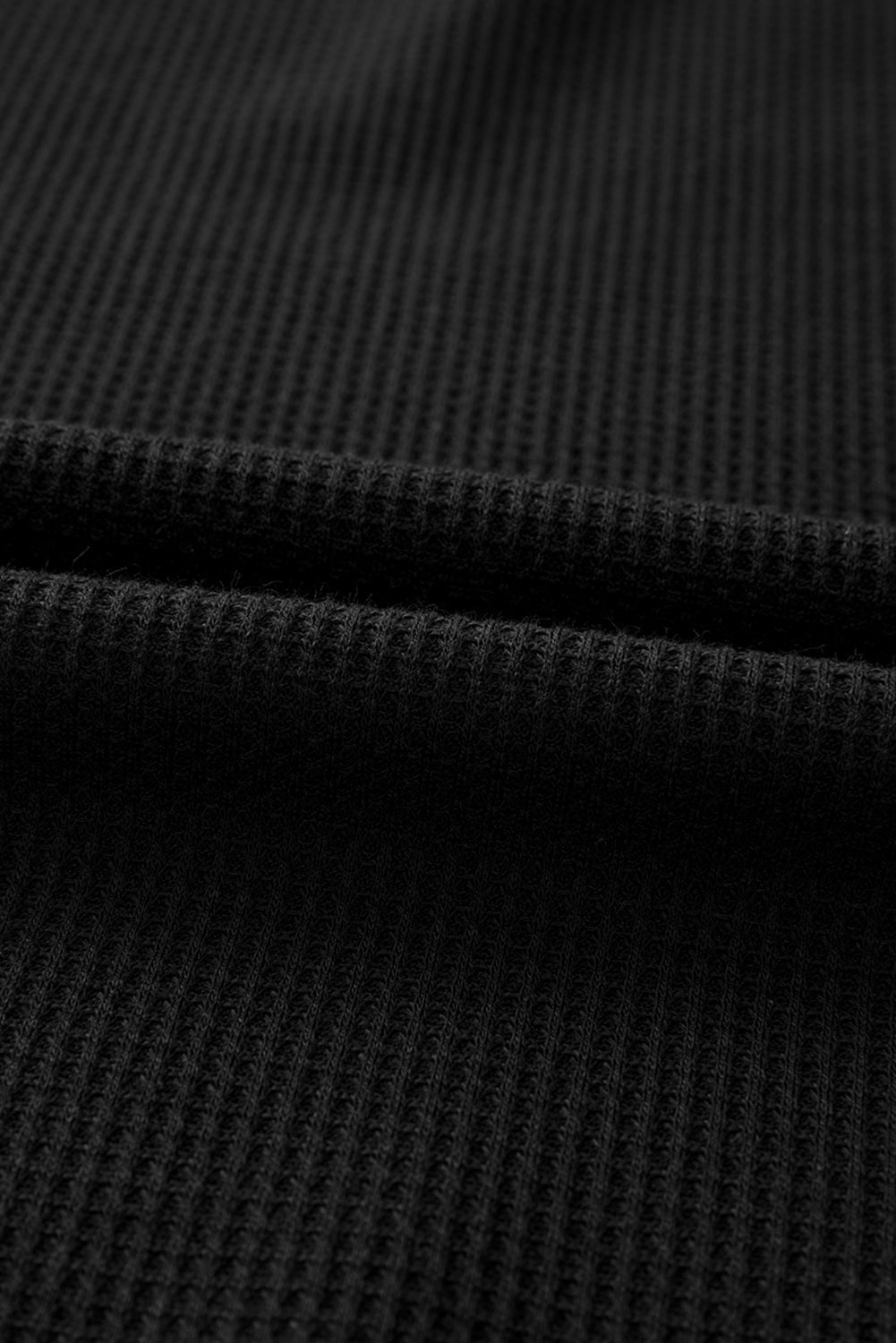 Solid Waffle Knit Round Neck Long Sleeve Top
