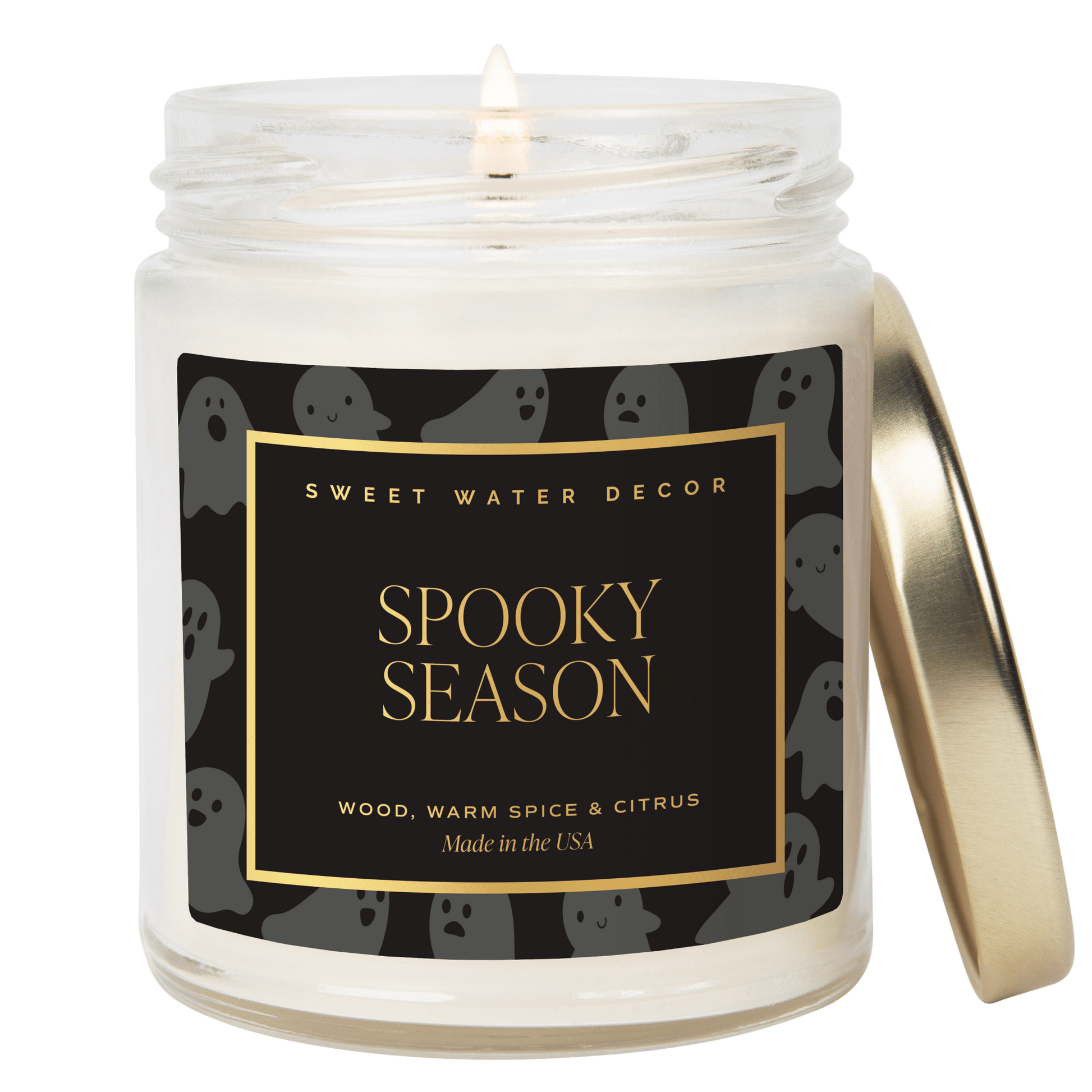 Celebrate Halloween with our Spooky Season Candle, featuring a playful ghost pattern that adds a touch of fun to your festive decor. Imagine an evening filled with excitement, where the scent of mysterious woods intertwines with warm spices and a zing of citrus from our Cozy Season fragrance, creating the perfect atmosphere for spooky stories and pumpkin carving. This candle is more treat than trick, providing a delightful glow that’s just right for cozy nights and Halloween gatherings. Embrace the spirit of the season with a candle that’s charmingly eerie and wonderfully fragrant.