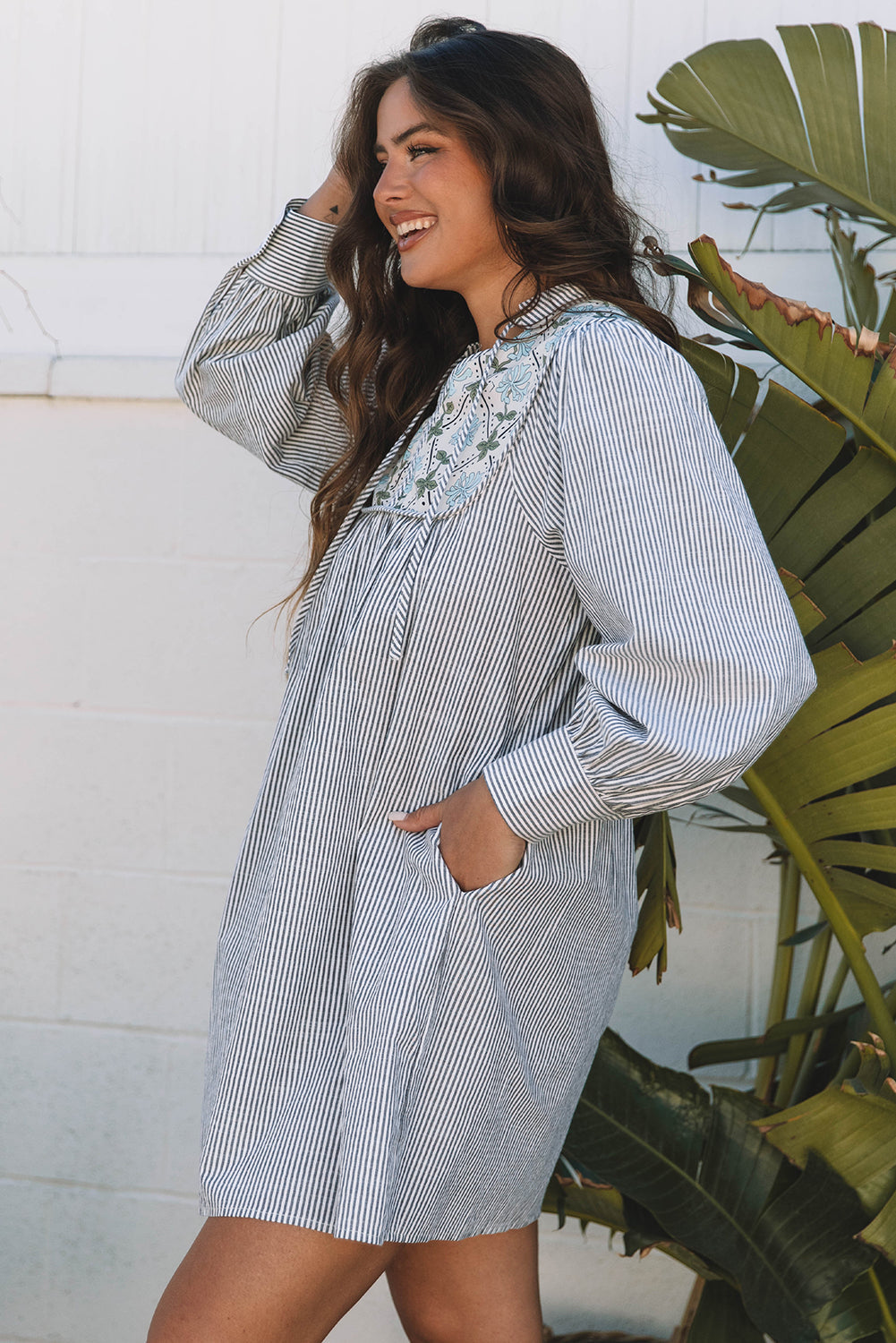 Discover the perfect marriage of classic and vibrant style in this versatile shift dress. The thoughtfully placed patchwork elevates the timeless pattern, creating visual interest that transitions seamlessly from season to season. Cut in a flattering shift silhouette that works for most body types, this long-sleeve design offers both style and practicality with functional side pockets. The tied neckline adds a refined touch, making it equally suited for casual outings or more polished occasions. An essential wardrobe piece that delivers on design and wearability. Cotton/Polyester