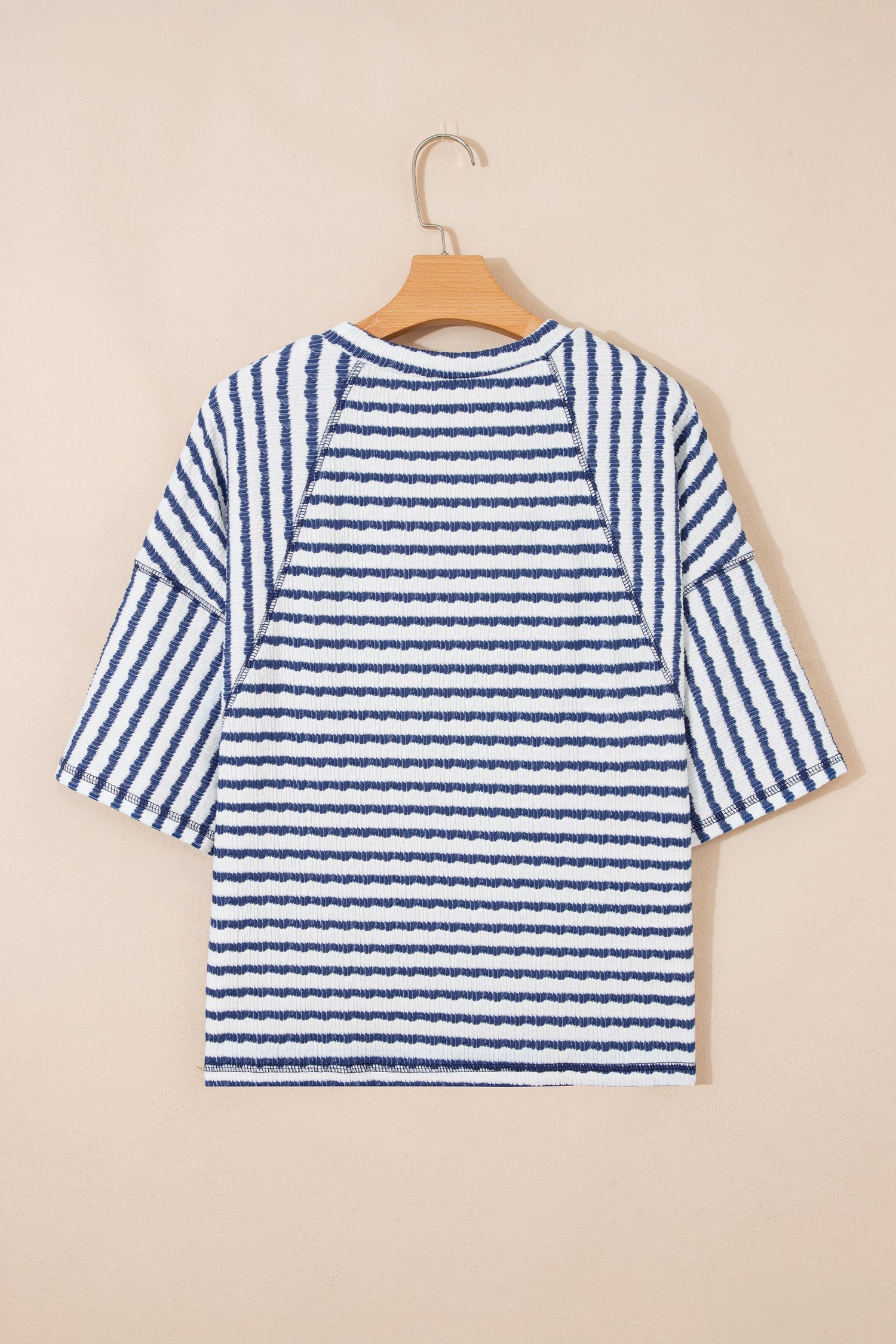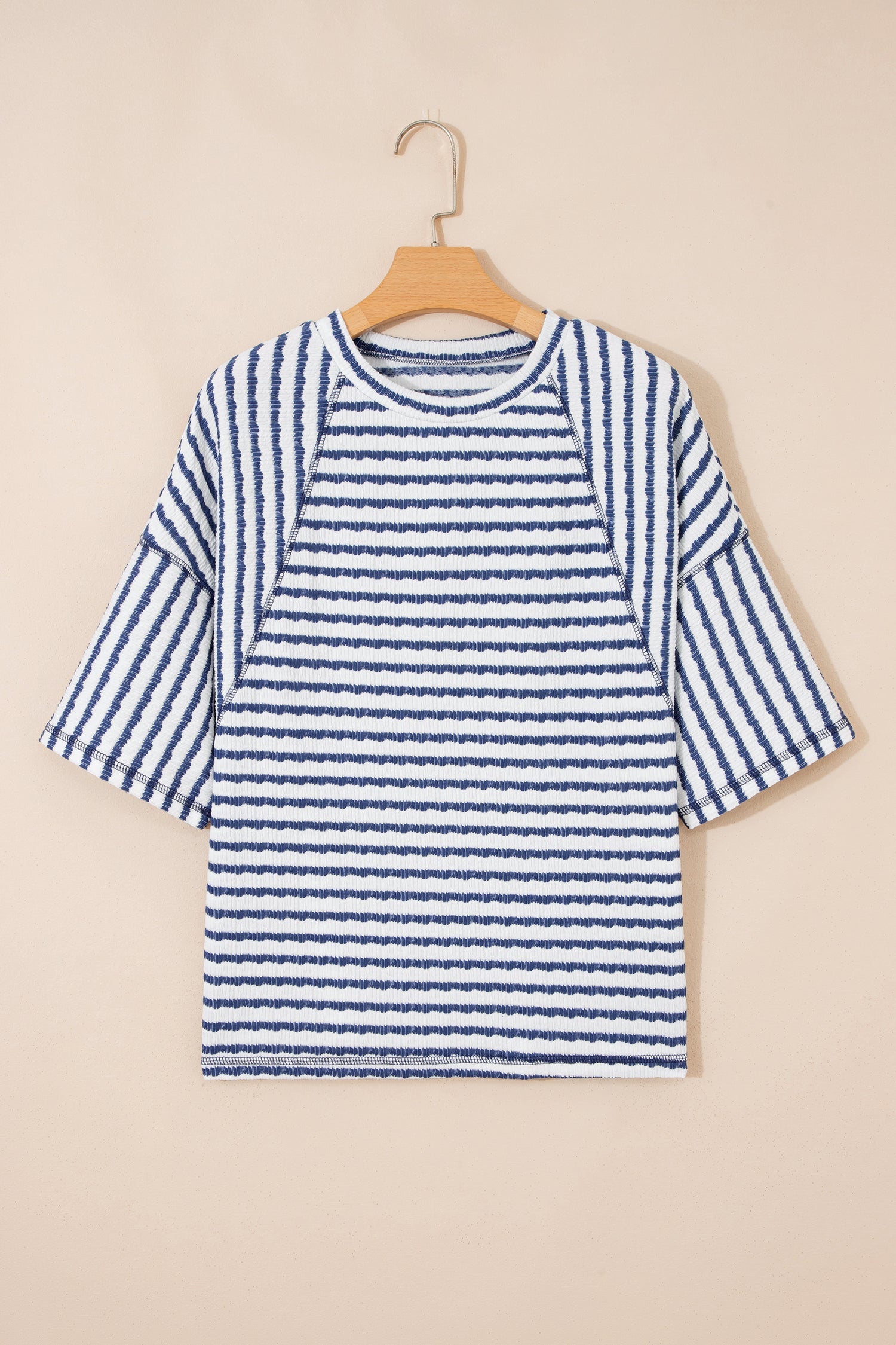 Elevate your everyday wardrobe with this versatile top. The textured fabric adds visual interest while the relaxed silhouette ensures all-day comfort. Designed with a classic round neckline and sleeves, this piece transitions seamlessly from casual outings to relaxed workdays. The split hem detail provides a modern edge that pairs effortlessly with jeans, trousers, or skirts. A wardrobe essential that balances style with practicality. Polyester/Viscose/Spandex