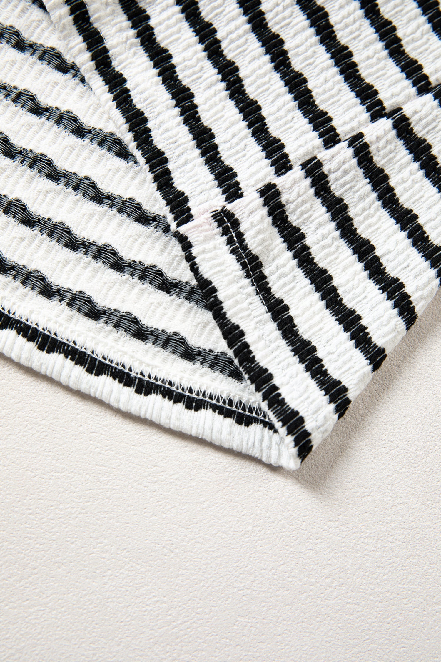 Stripe V-Neck Corded Knit Long Sleeve Top