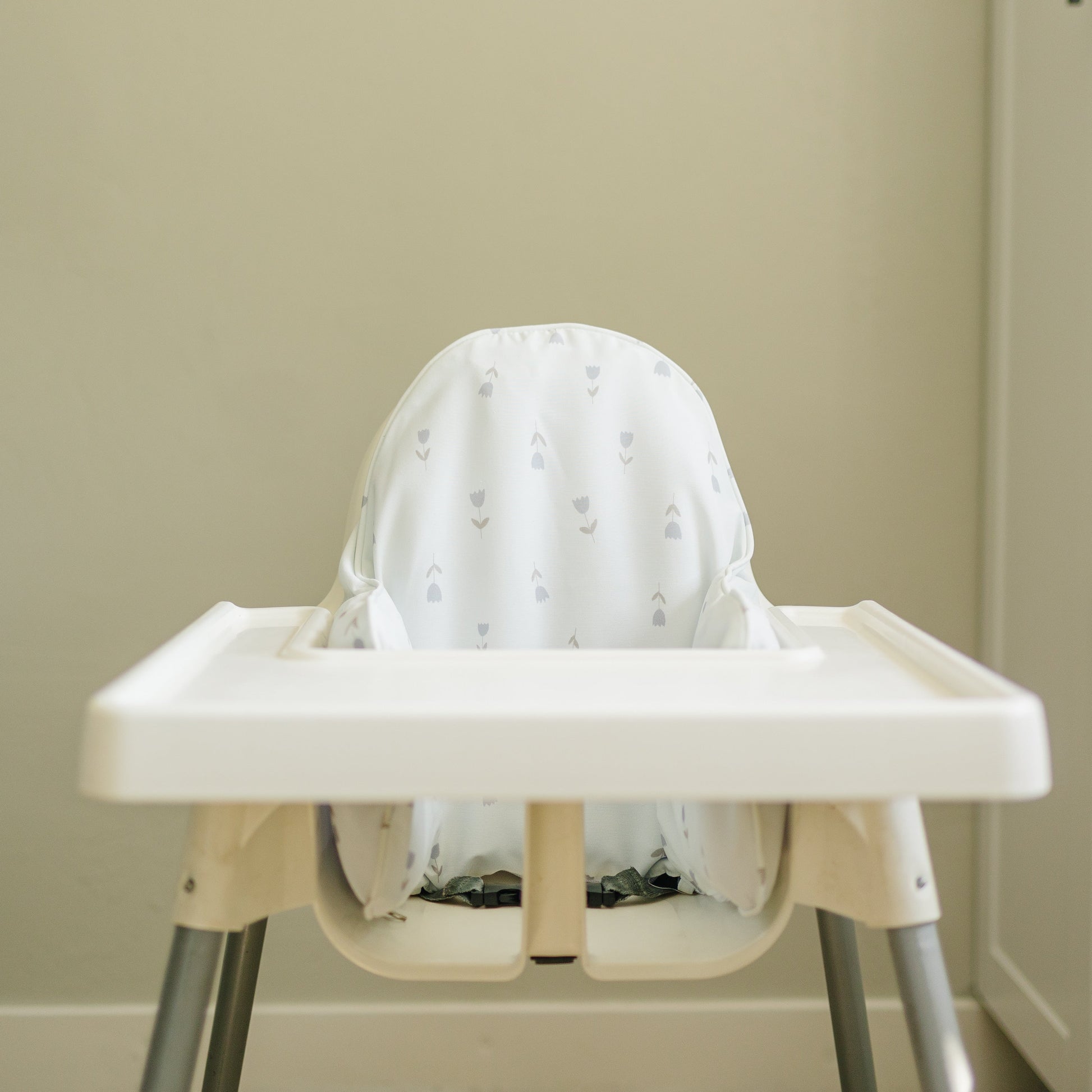 Blue tulips printed on white! Wipeable cushion cover for the IKEA Antilop Highchair