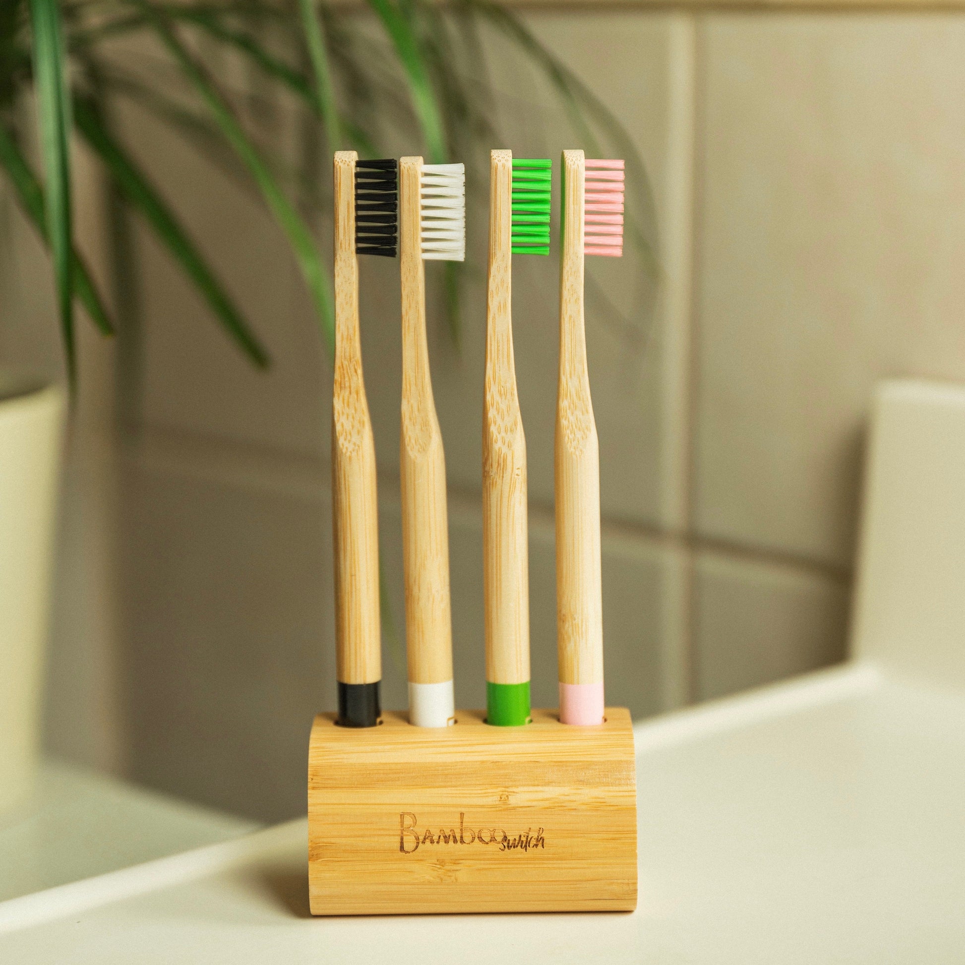 Our Bamboo Toothbrush Stand is a stylish and eco-friendly accessory for organizing your toothbrushes, made from sustainable bamboo with slots for multiple brushes