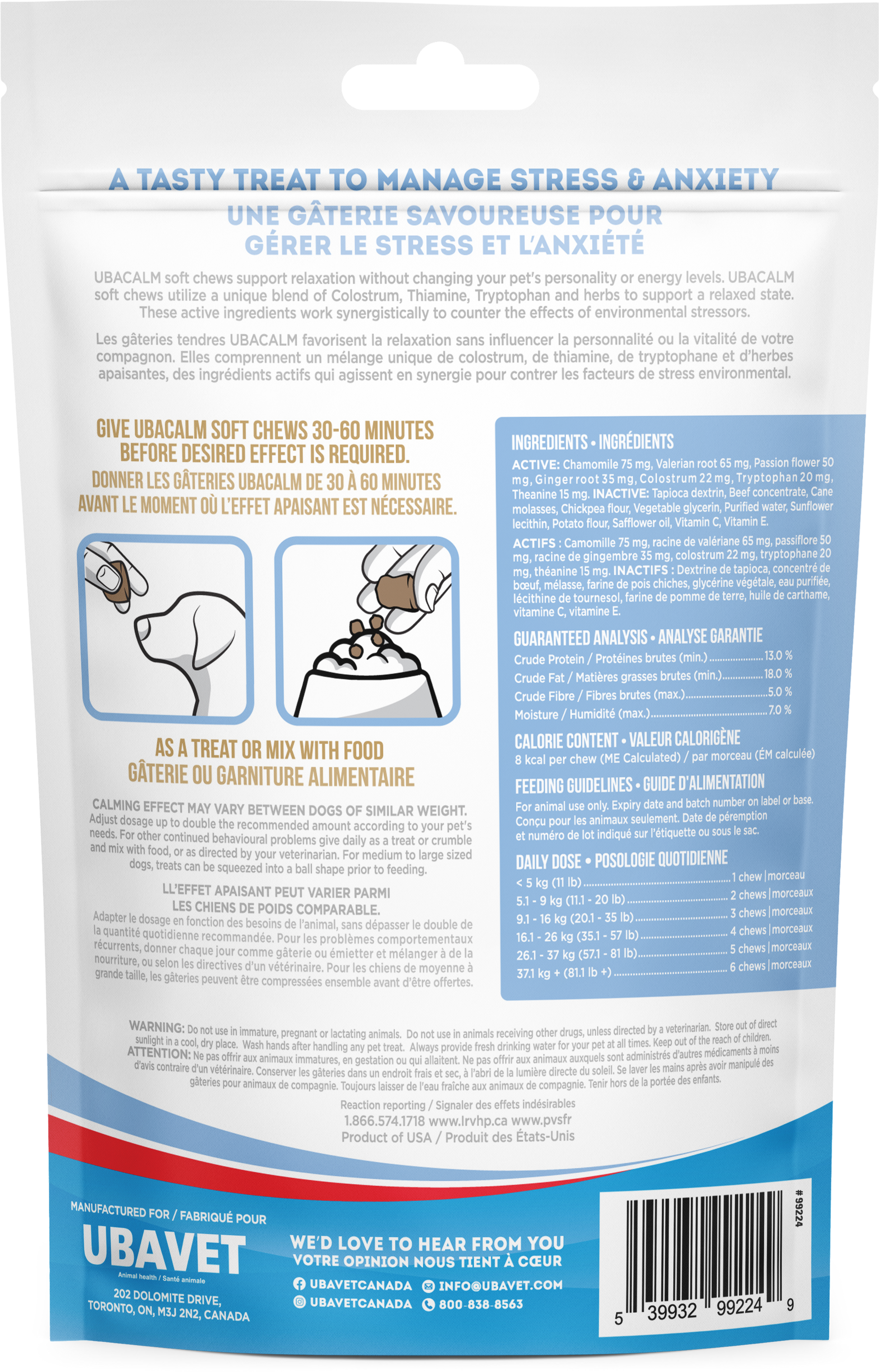 UBAVET UBACALM Calming Soft Chews for Dogs & Cats – Natural Stress & Anxiety Relief