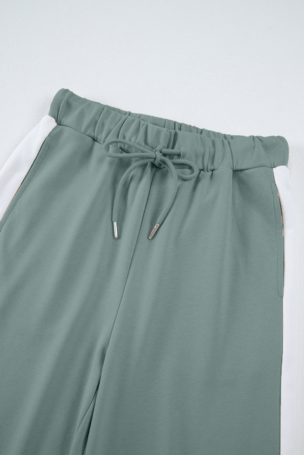 This two-piece set features a design that brings a sophisticated preppy vibe. The pullover top is enhanced with feminine puff sleeves for a modern, stylish look. Complementing the top, the wide-leg pants have a drawstring waist, offering both comfort and a customizable fit, perfect for casual wear without sacrificing style. Polyester/Cotton